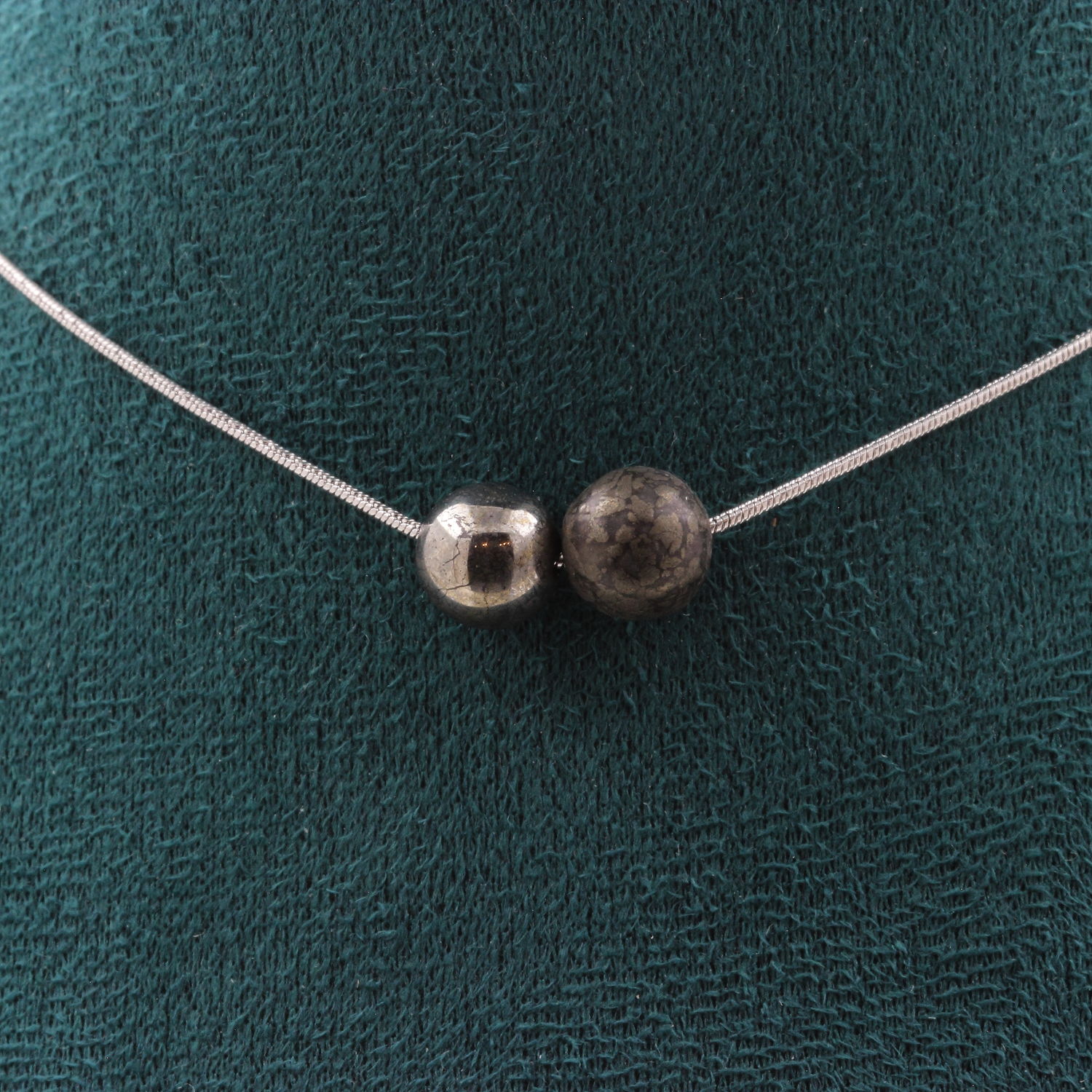 Collier 2 perles Pyrite d'Espagne 8 mm. Chaine en acier inoxydable