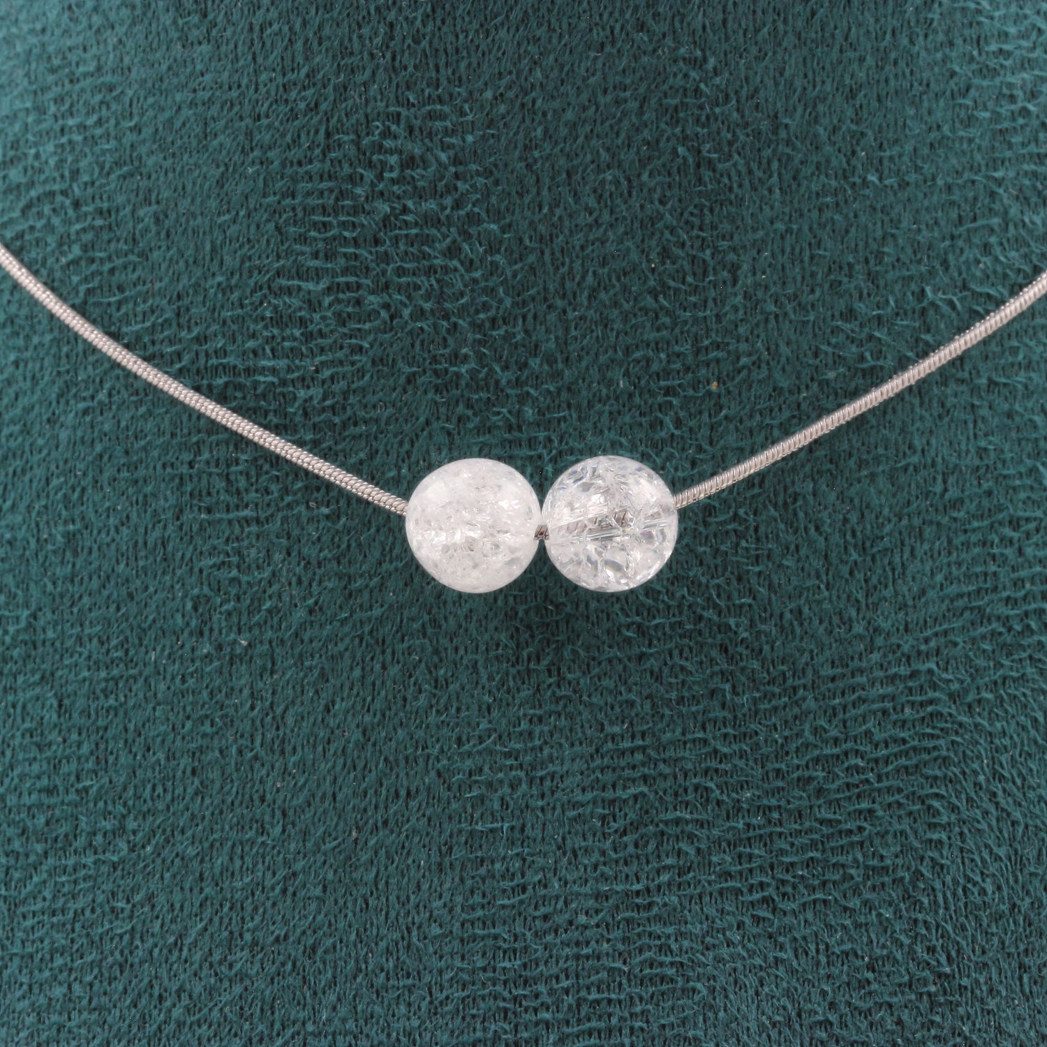 Collier 2 perles Quartz craquelé du Brésil 8 mm Chaine en acier inoxydable