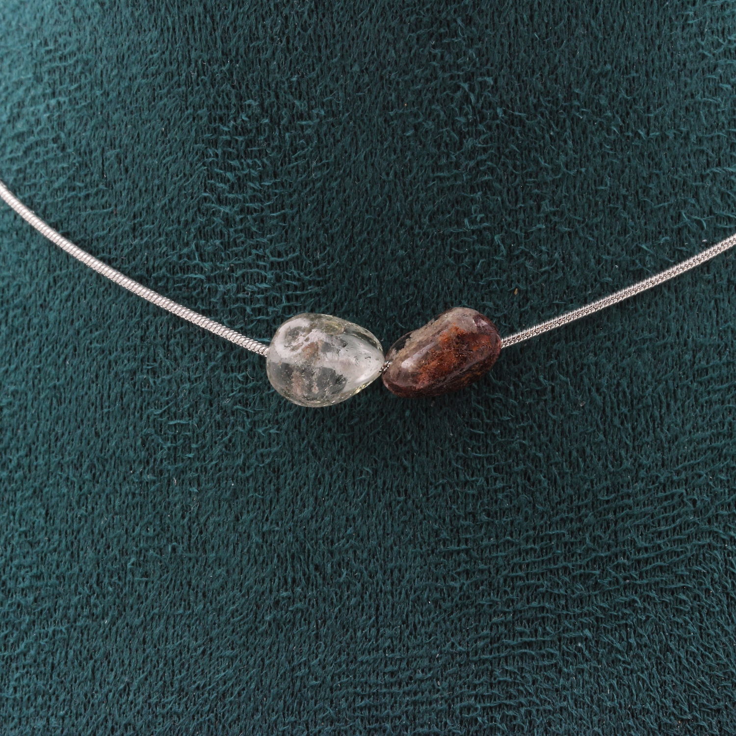 Collier 2 perles Quartz fantôme vert du Brésil chaine en acier inoxydable longueur 45 cm. Nous pouvons le fabriquer à votre longueur sur demande. Fabriqué en France dans notre atelier A Bijoux.