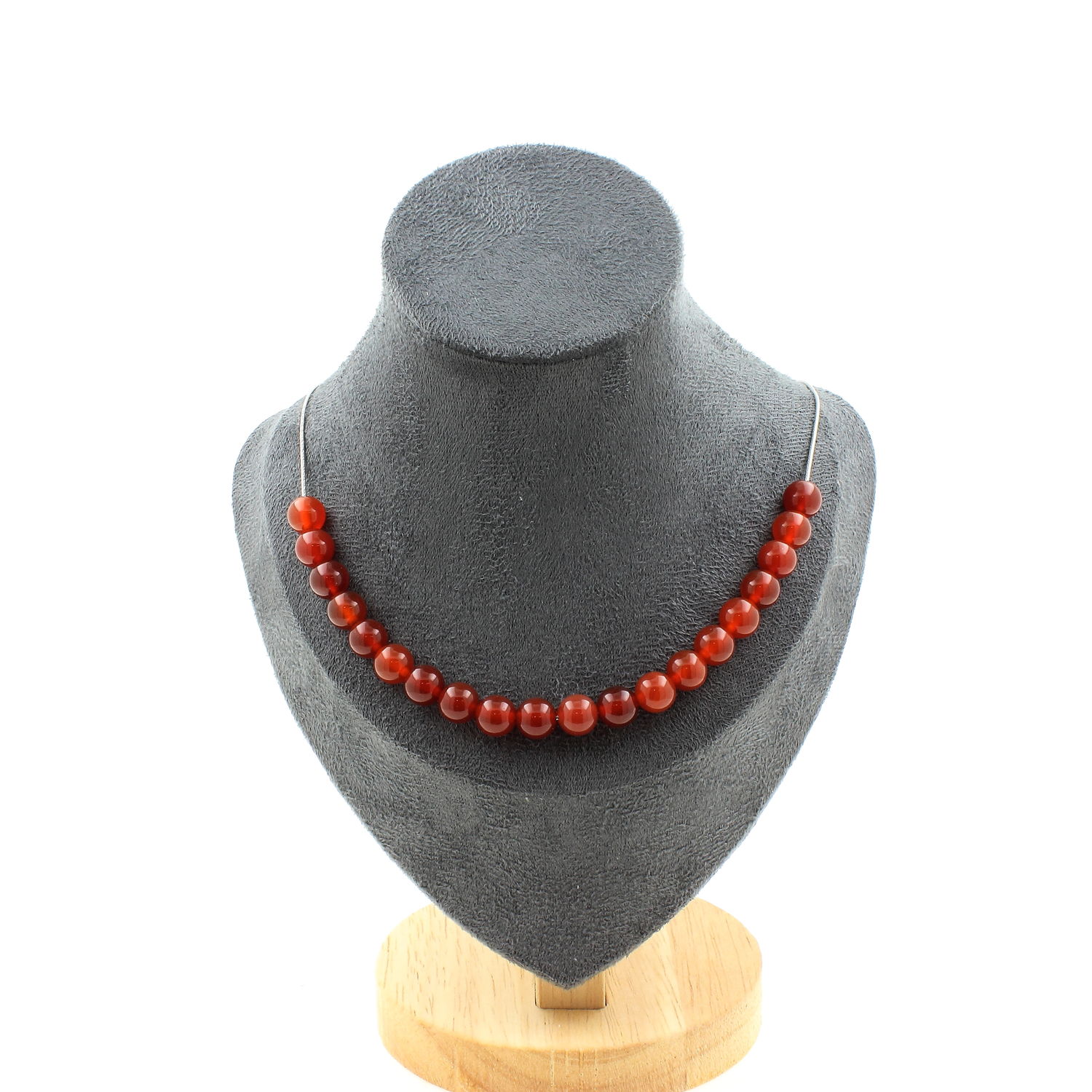 Collier 20 perles Agate rouge 8 mm. Chaine en acier inoxydable