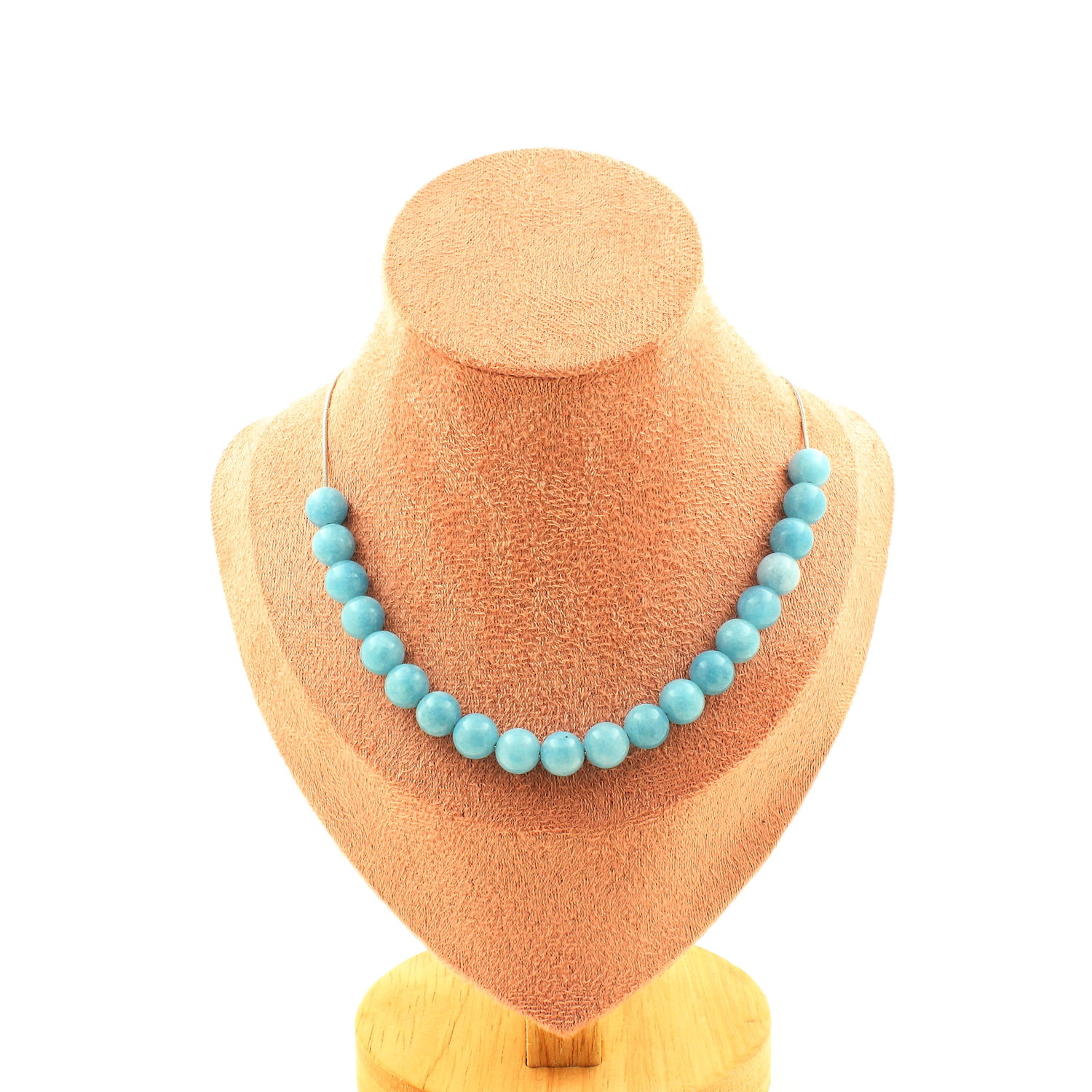 Collier 20 perles Calcédoine bleu 8 mm. Chaine en acier inoxydable