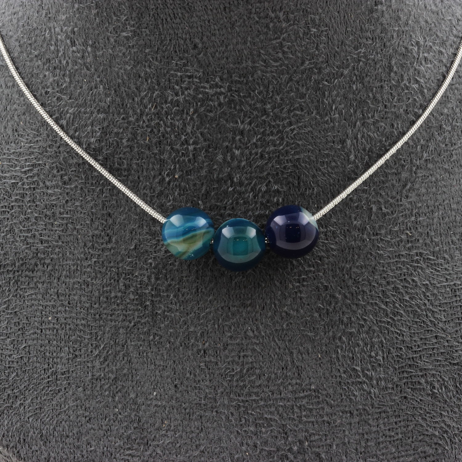 Collier 3 perles Agate rubanée bleu 8 mm chaine en acier inoxydable longueur 45 cm. Nous pouvons le fabriquer à votre longueur sur demande. Fabriqué en France dans notre atelier A Bijoux.
