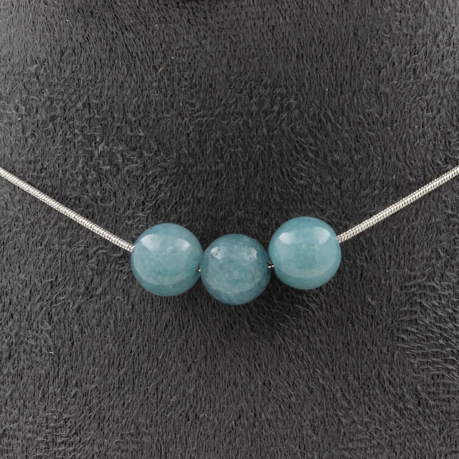 Collier 3 perles Aigue-marine 8 mm. Chaine en acier inoxydable