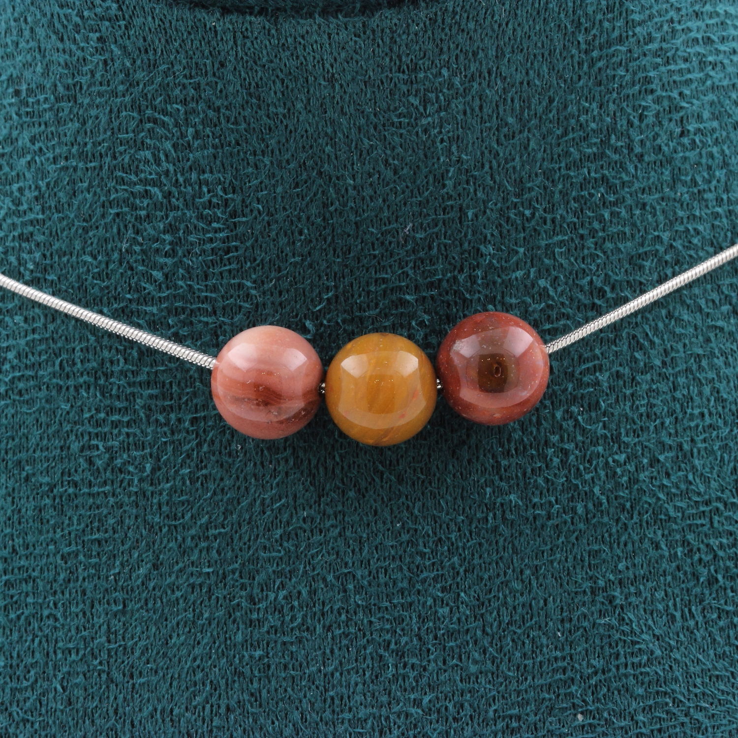 Collier 3 perles Bois pétrifié 8 mm. Chaine en acier inoxydable