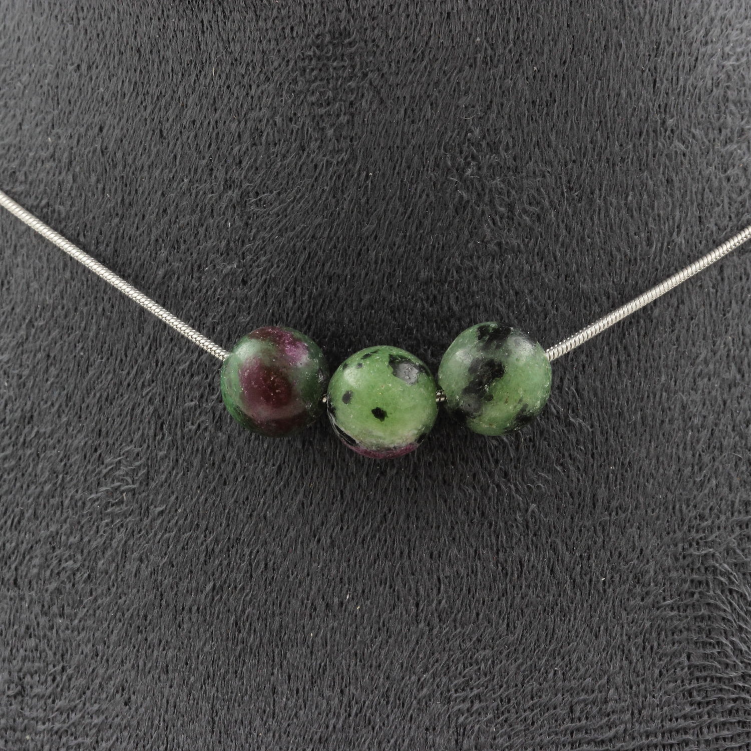 Collier 3 perles Epidote d'Australie 8 mm chaine en acier inoxydable longueur 45 cm. Nous pouvons le fabriquer à votre longueur sur demande. Fabriqué en France dans notre atelier A Bijoux.