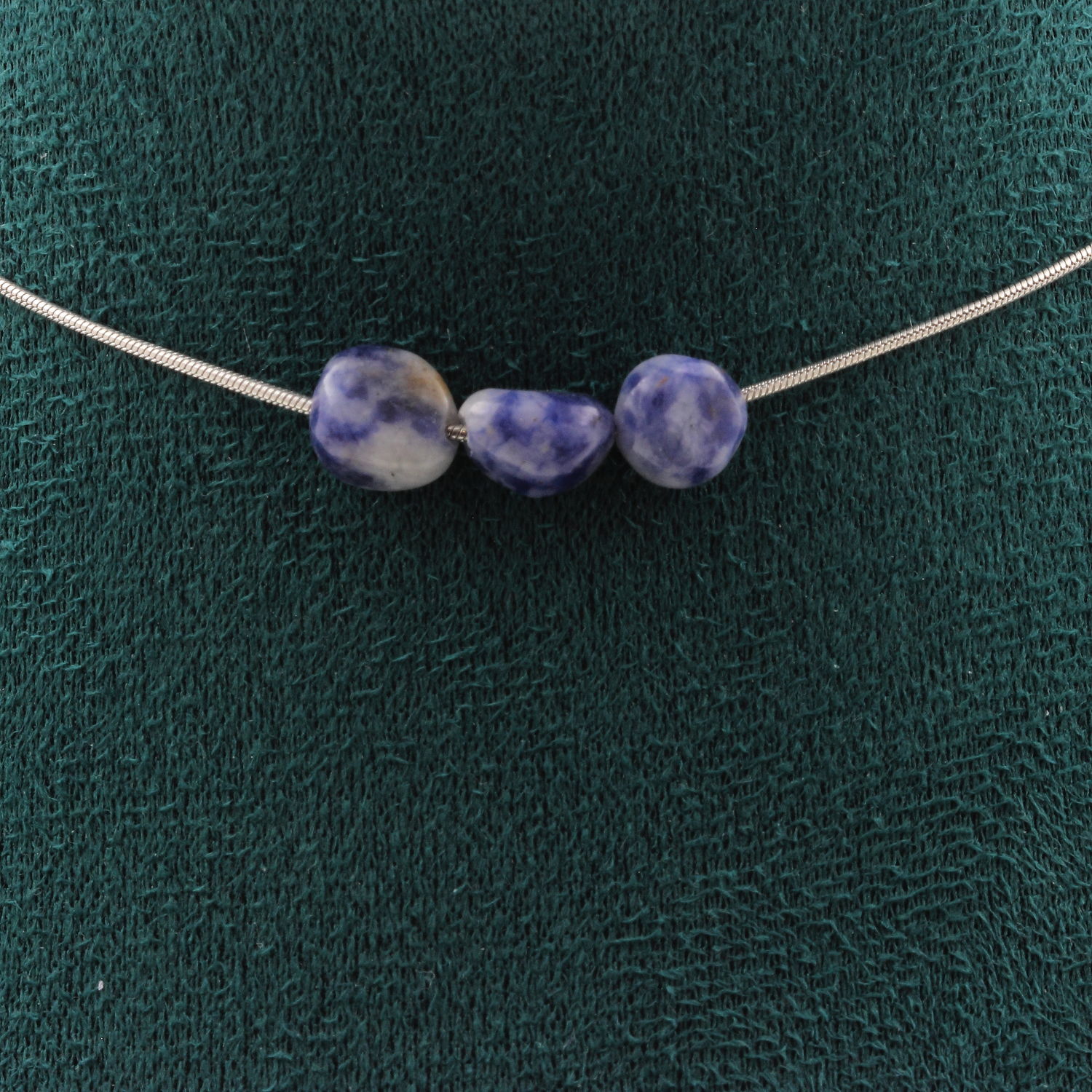 Collier 3 perles Jaspe bleu d'Afrique du Sud. Chaine en acier inoxydable