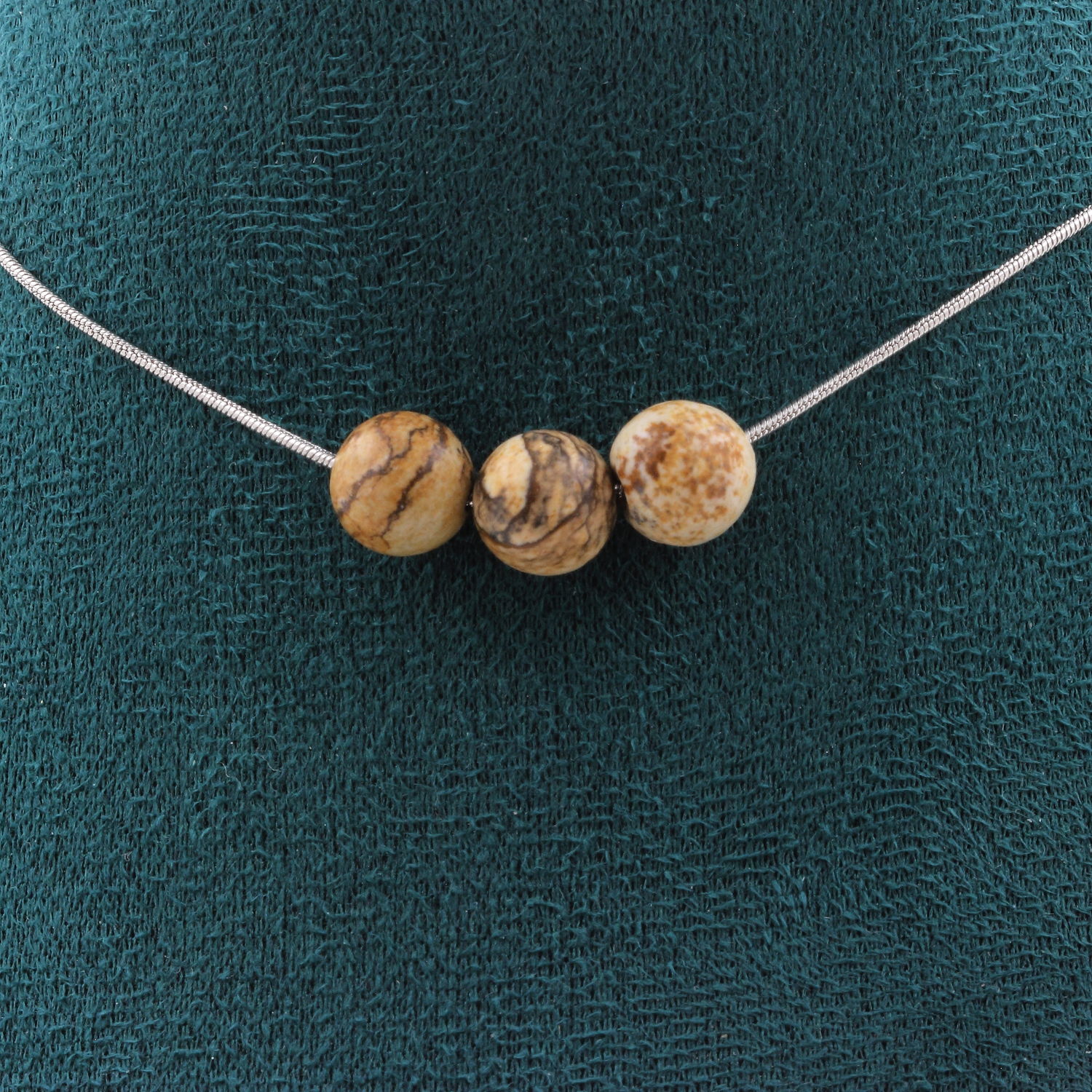 Collier 3 perles Jaspe paysage 8 mm. Chaine en acier inoxydable