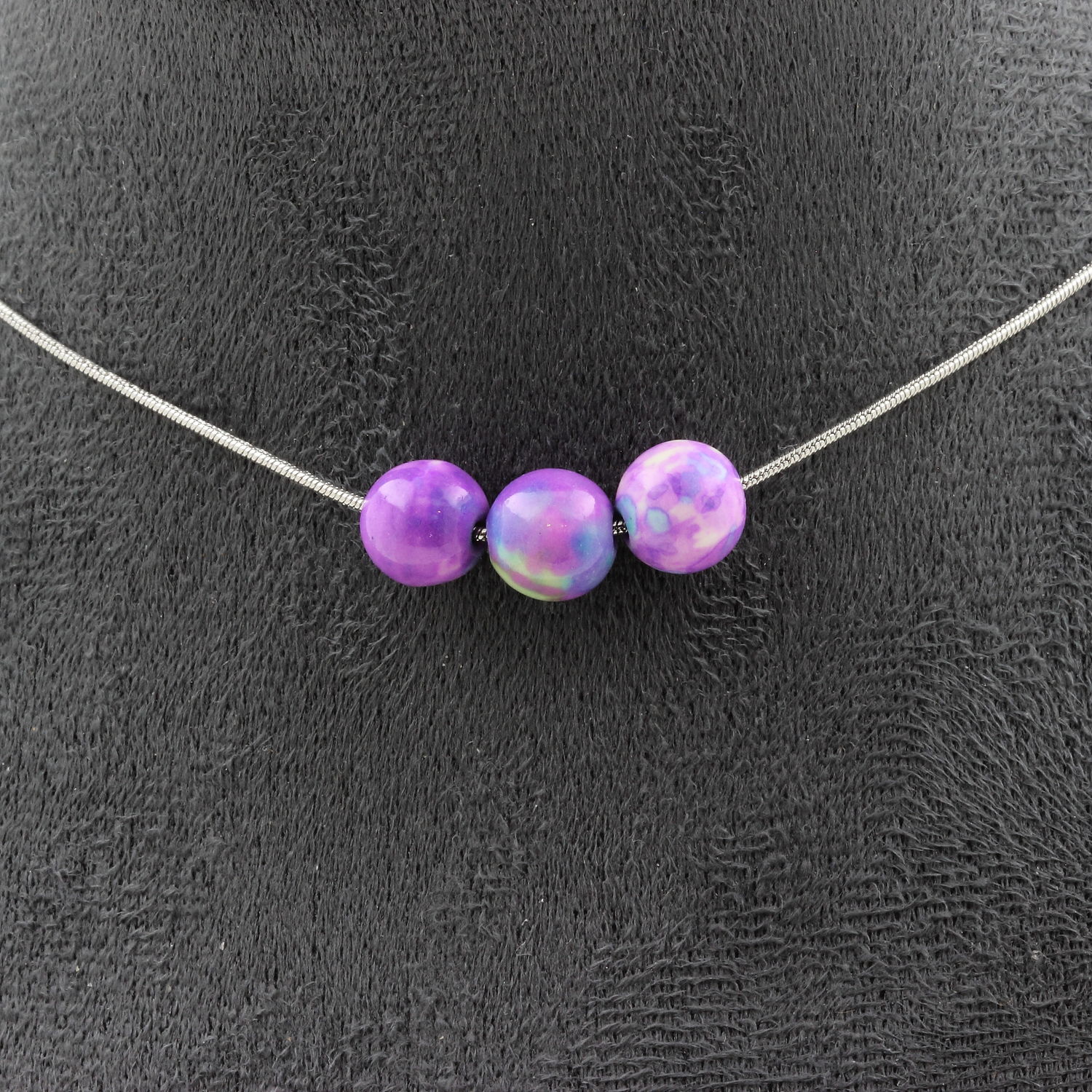 Collier 3 perles Jaspe violet bleu 8 mm chaine en acier inoxydable longueur 45 cm. Nous pouvons le fabriquer à votre longueur sur demande. Fabriqué en France dans notre atelier A Bijoux.