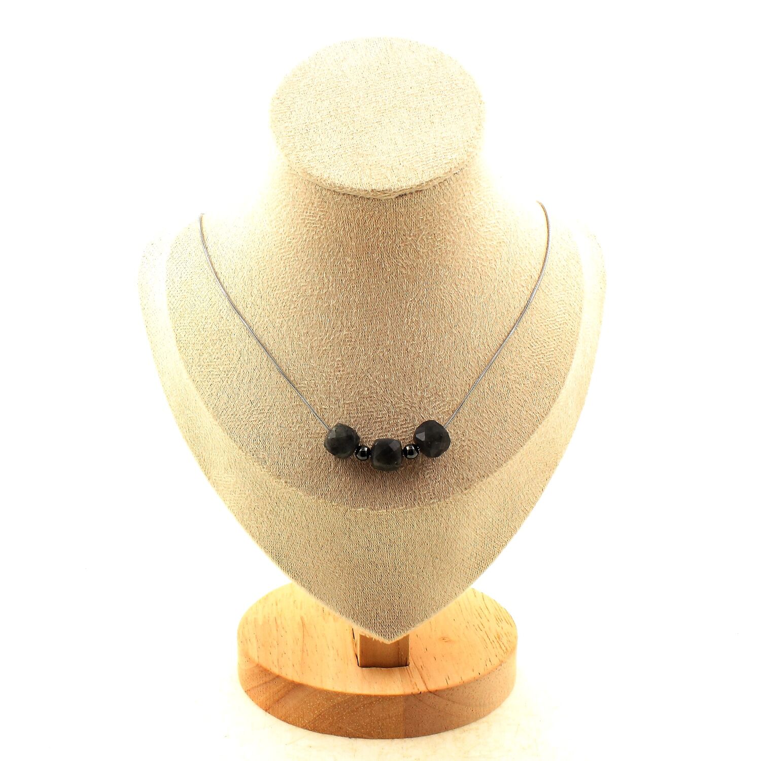 Collier 3 Perles Labradorite 9 mm cube à facettes + Hématite 4 mm chaine en acier inoxydable.