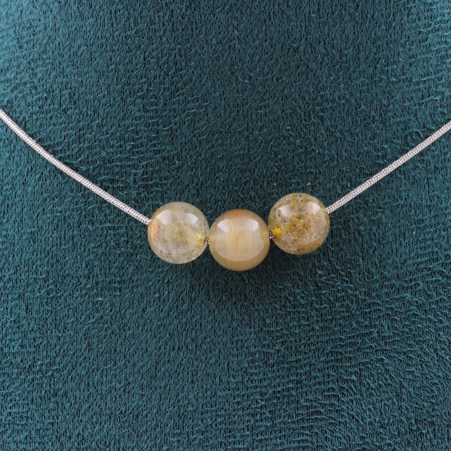 Collier 3 perles Quartz rutile 8 mm Chaine en acier inoxydable