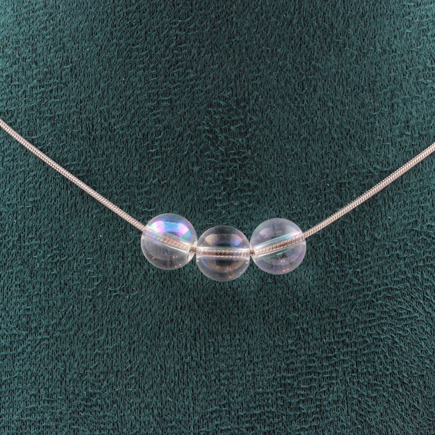 Collier 3 perles Quartz Titane 8 mm Chaine en acier inoxydable