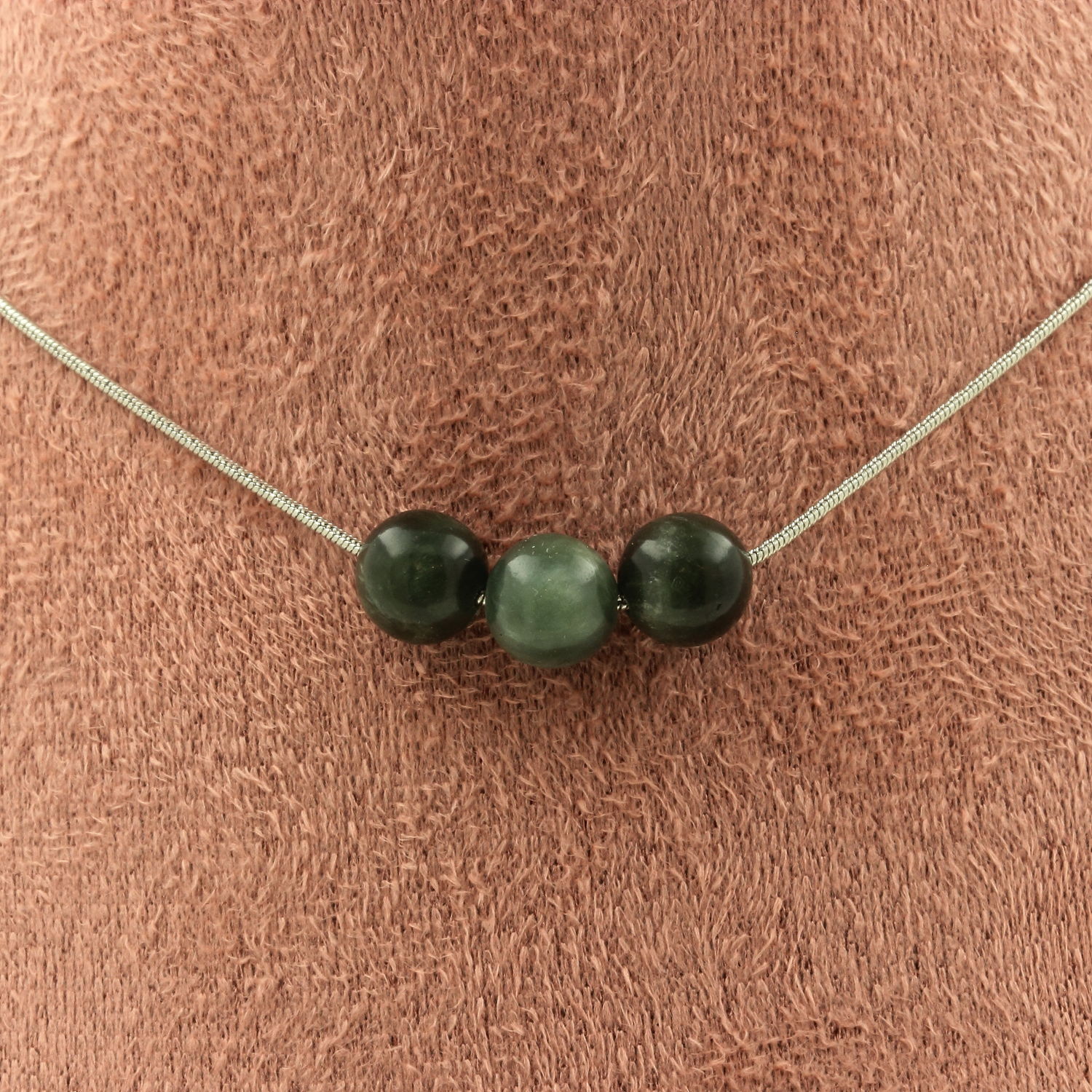 Collier 3 perles Seraphinite de Russie 8 mm Chaine en acier inoxydable