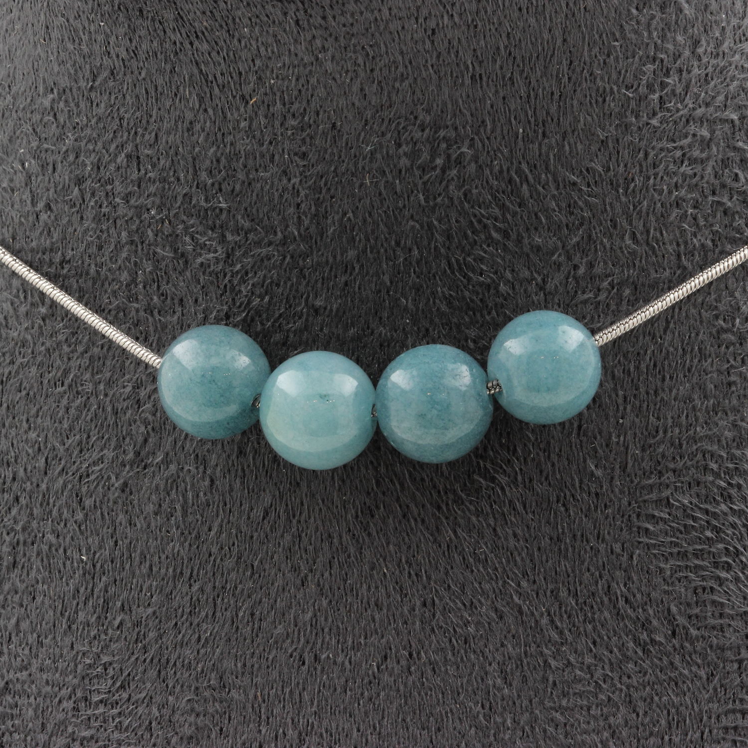 Collier 4 perles Aigue-marine 8 mm. Chaine en acier inoxydable