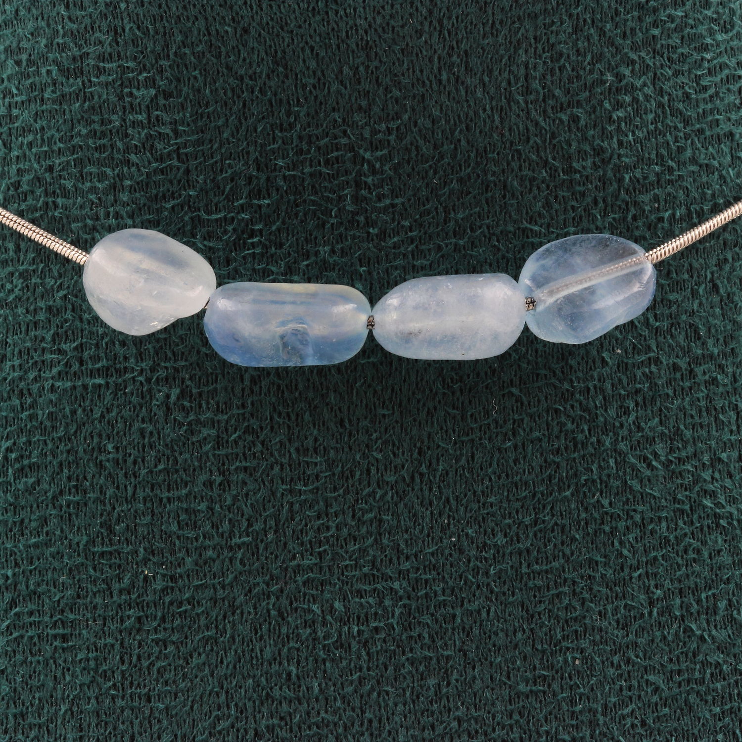 Collier 4 perles Aigue-Marine du Brésil. Chaine en acier inoxydable