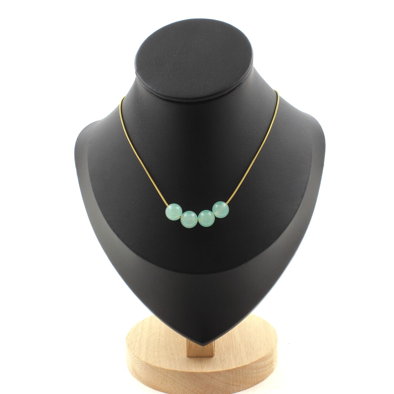 Collier 4 perles Angélite 8 mm. Chaine en acier doré inoxydable