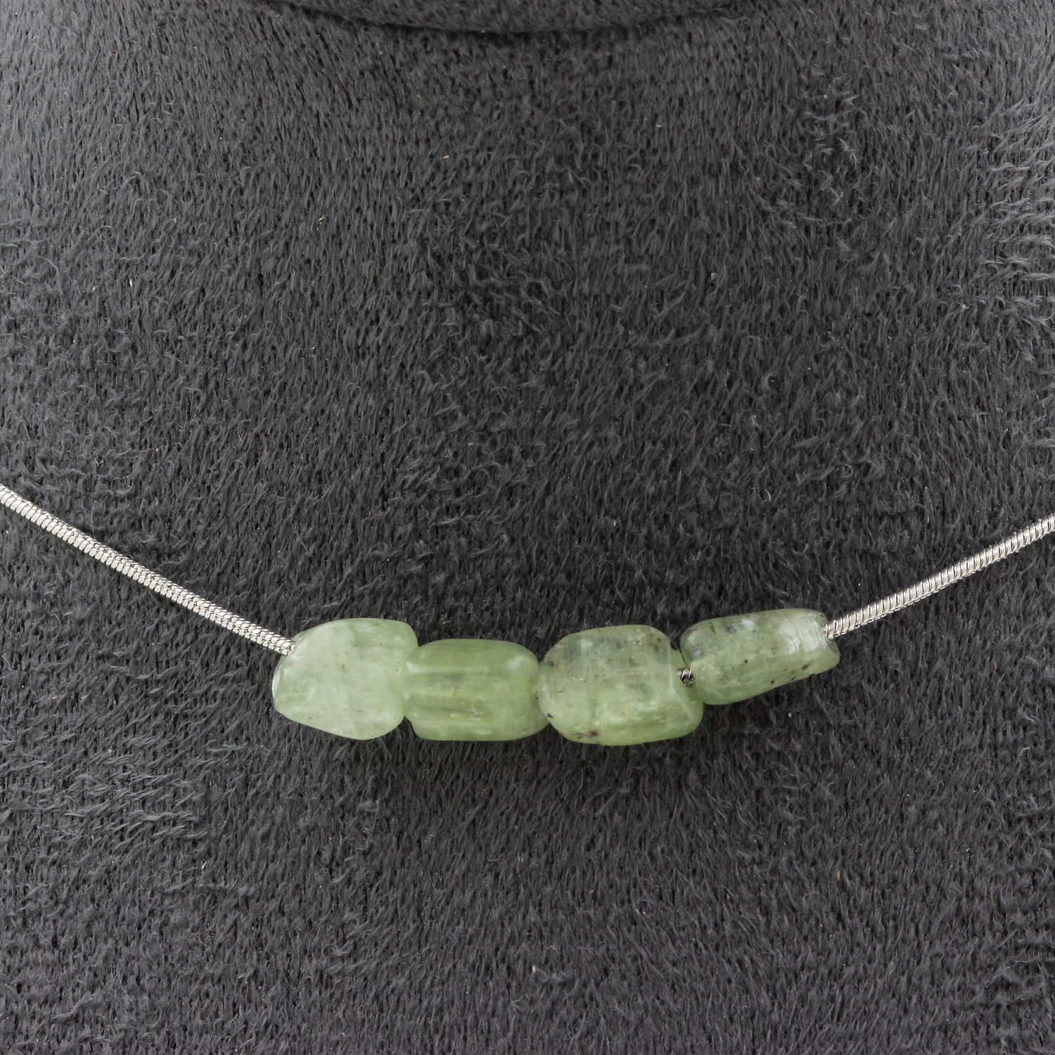 Collier 4 perles Apatite verte de Madagascar. Chaine en acier inoxydable