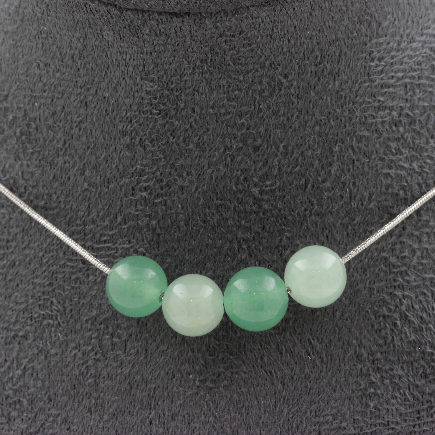 Collier 4 perles Aventurine 8 mm. Chaine en acier inoxydable