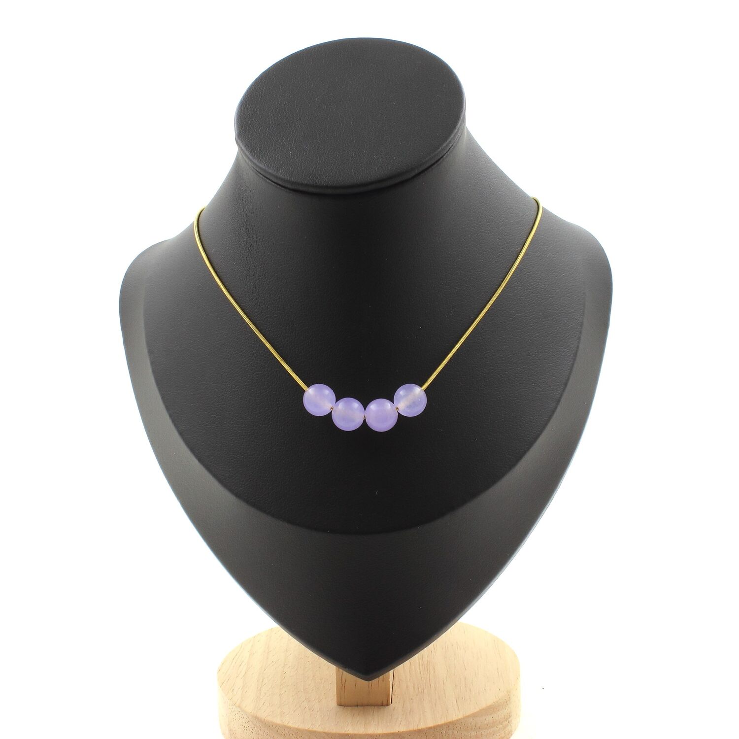 Collier 4 perles Calcédoine lavande 8 mm. Chaine en acier doré inoxydable