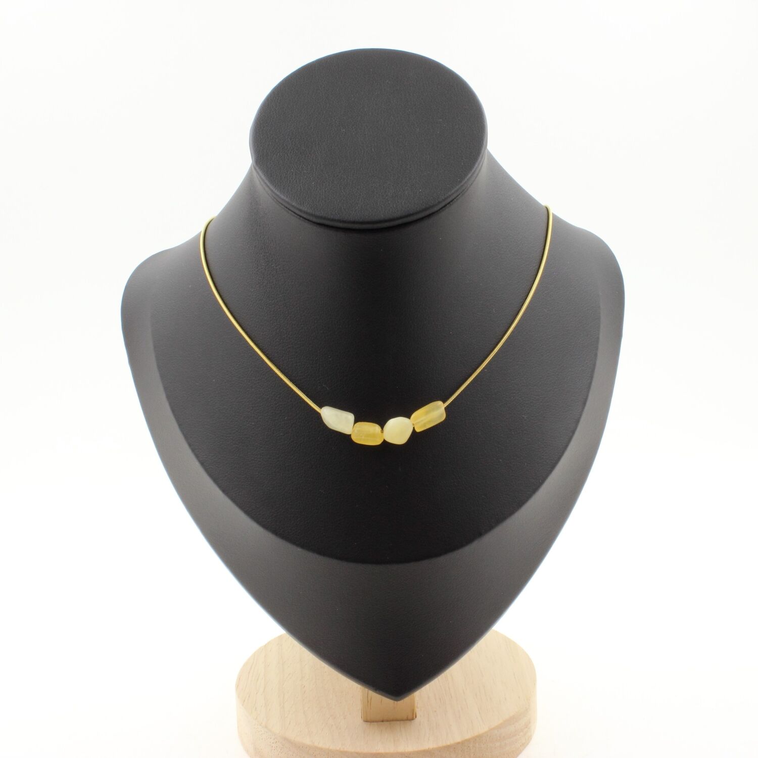 Collier 4 perles Calcite jaune du Royaume-Uni. Chaine en acier doré inoxydable