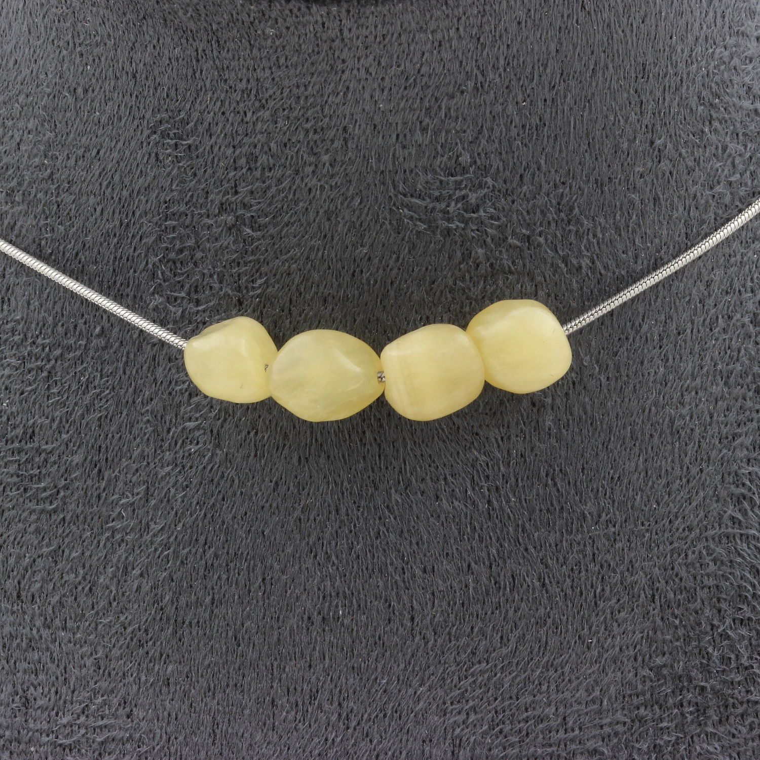 Collier 4 perles Calcite jaune du Royaume-Uni de forme libre 5 mm-8 mm chaine en acier inoxydable longueur 45 cm. Nous pouvons le fabriquer à votre longueur sur demande. Fabriqué en France dans notre atelier A Bijoux.