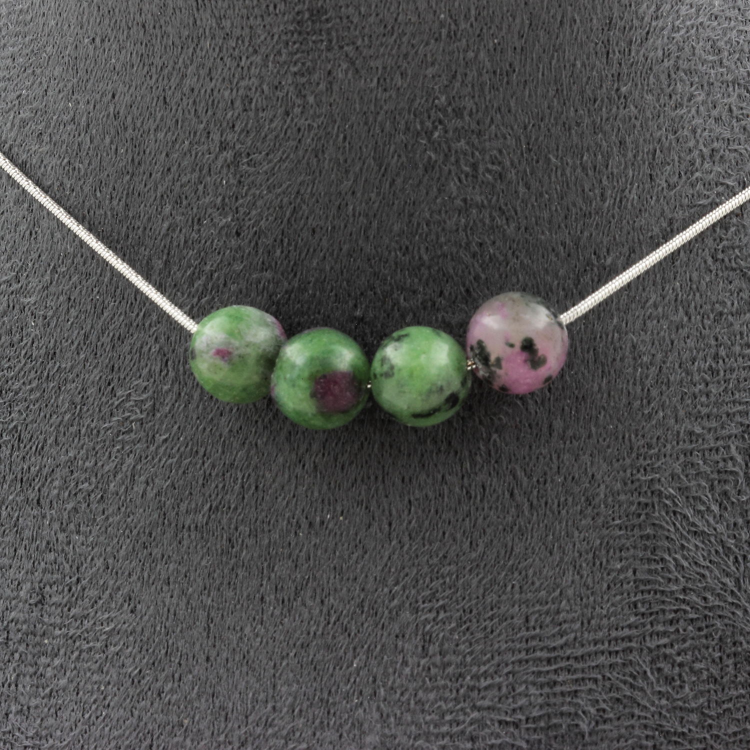Collier 4 perles Epidote de Myanmar (Birmanie). Chaine en acier inoxydable