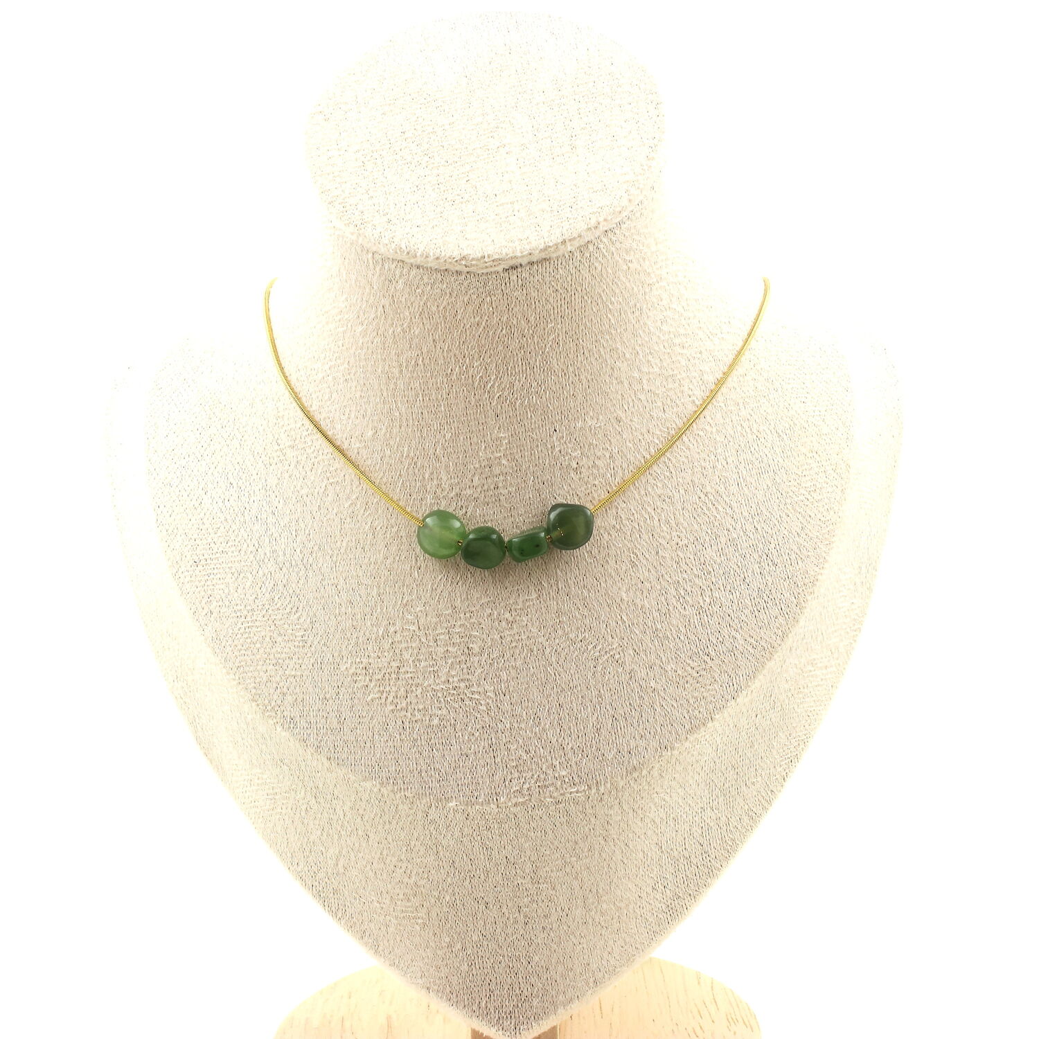 Collier 5 perles Jade néphrite de Sibérie (Russie). Chaine en acier doré inoxydable
