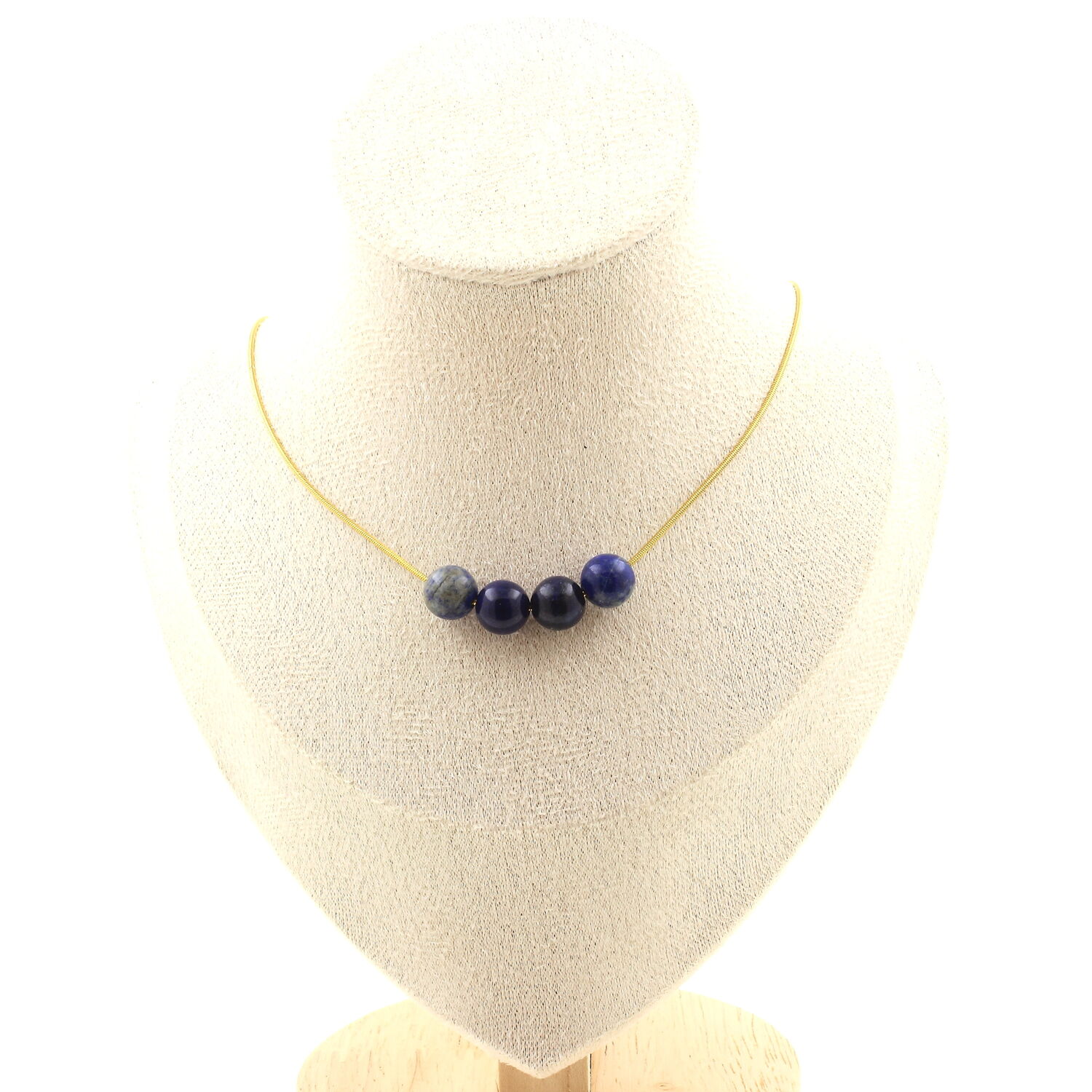 Collier 4 perles Lapis Lazuli 8 mm. Chaine en acier doré inoxydable