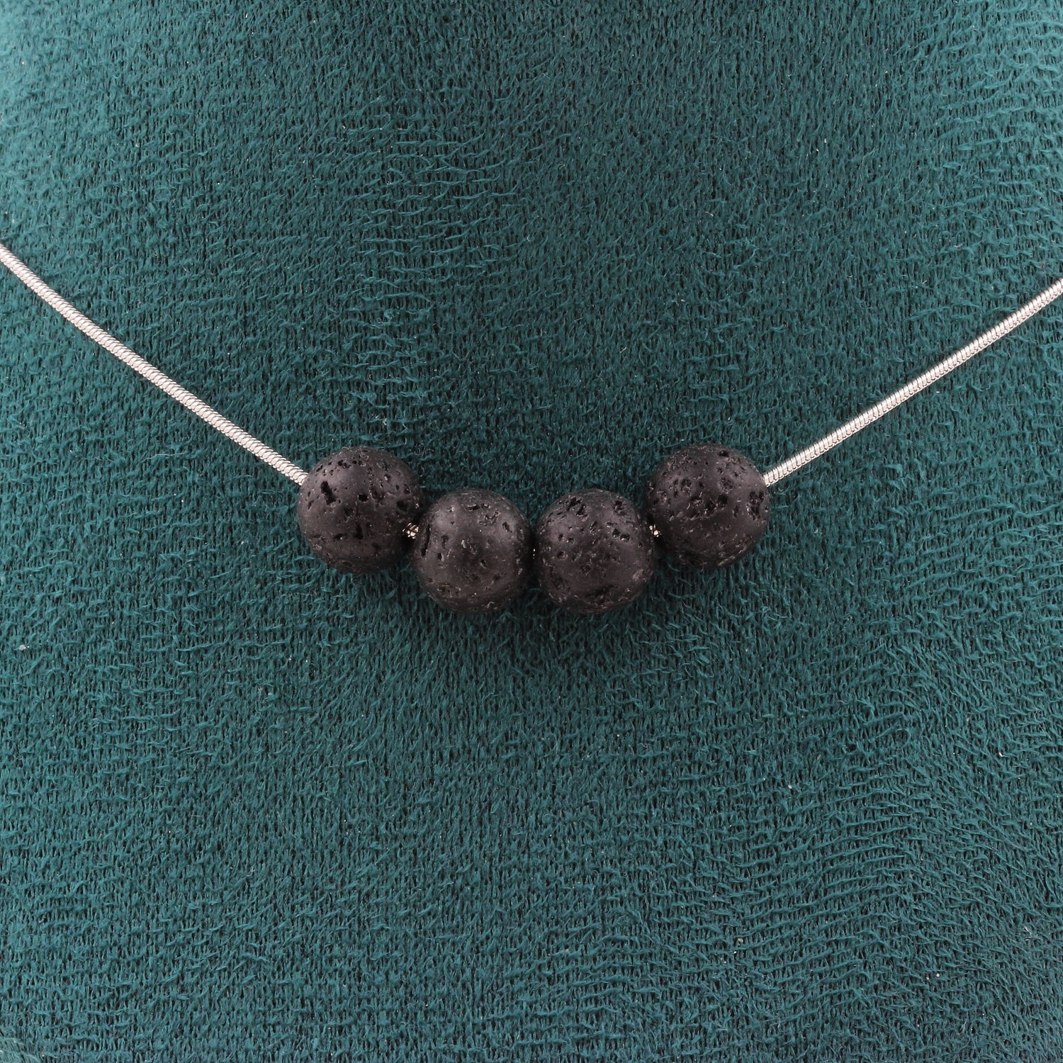 Collier 4 perles Lave 8 mm. Chaine en acier inoxydable