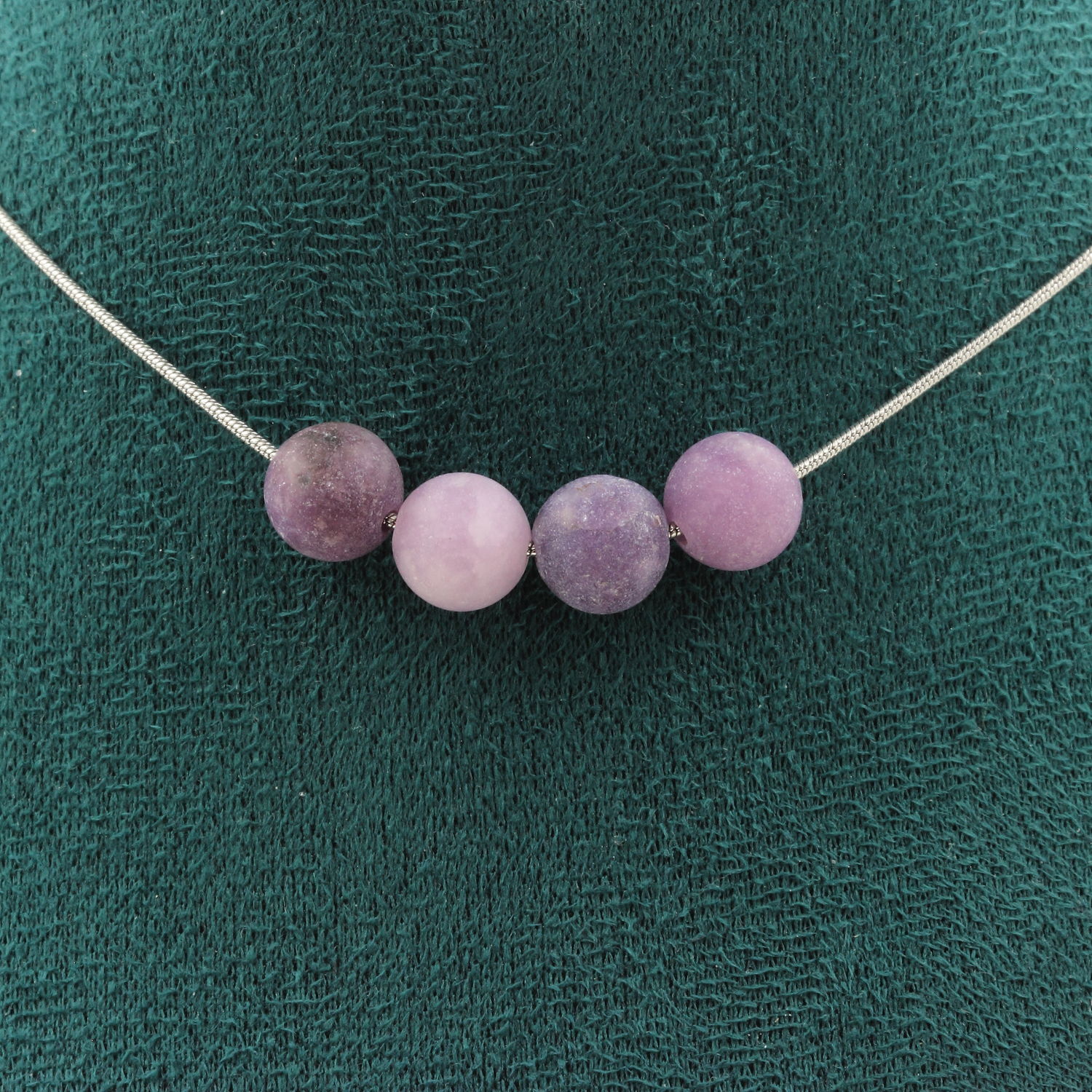 Collier 4 perles Mica violet mat 8 mm. Chaine en acier inoxydable