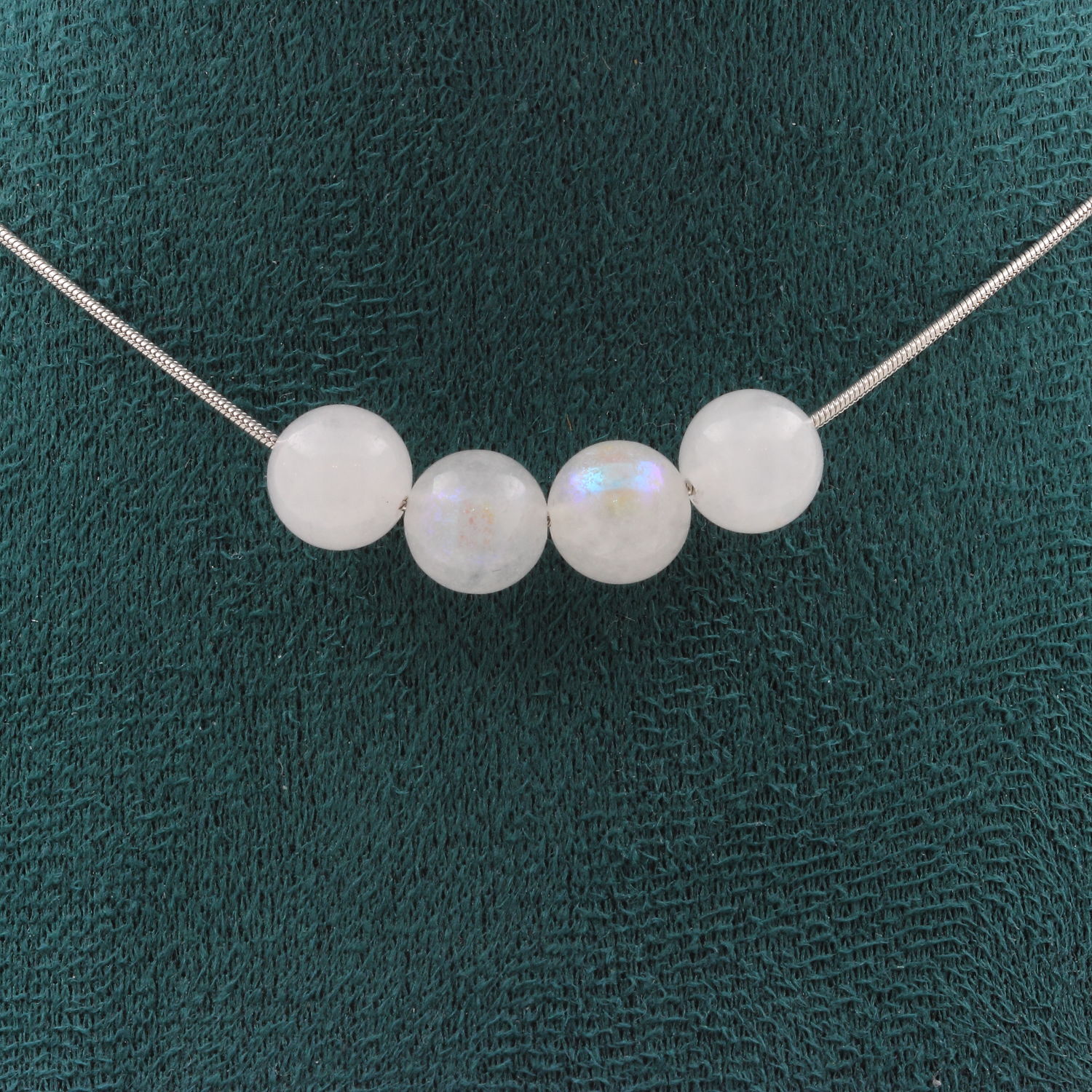 Collier 4 perles Pierre de Lune 8 mm. Chaine en acier inoxydable