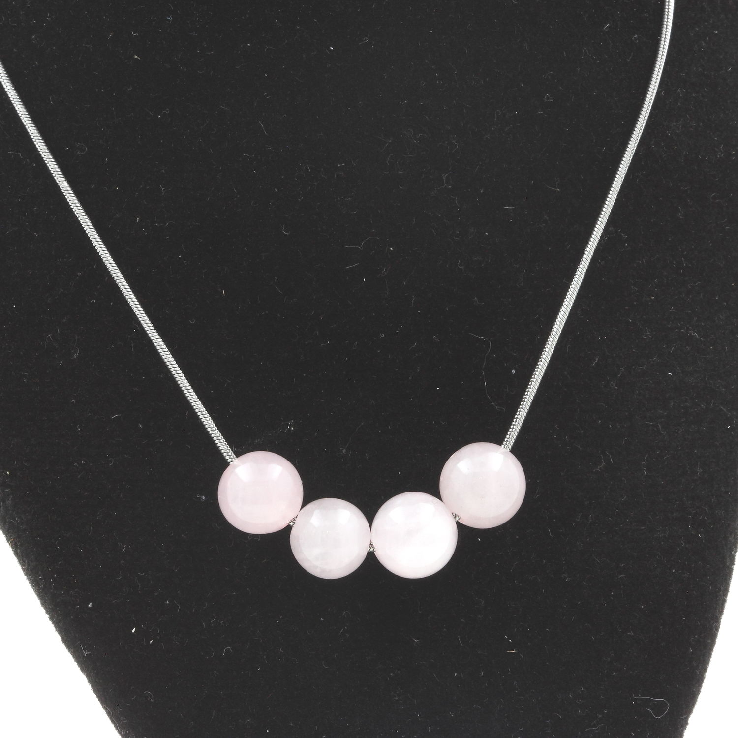 Collier 4 perles Quartz rose 8 mm chaine en acier inoxydable ( longueur 40, 45, 50, 55, 60, 70, 80, 90 cm au choix ).