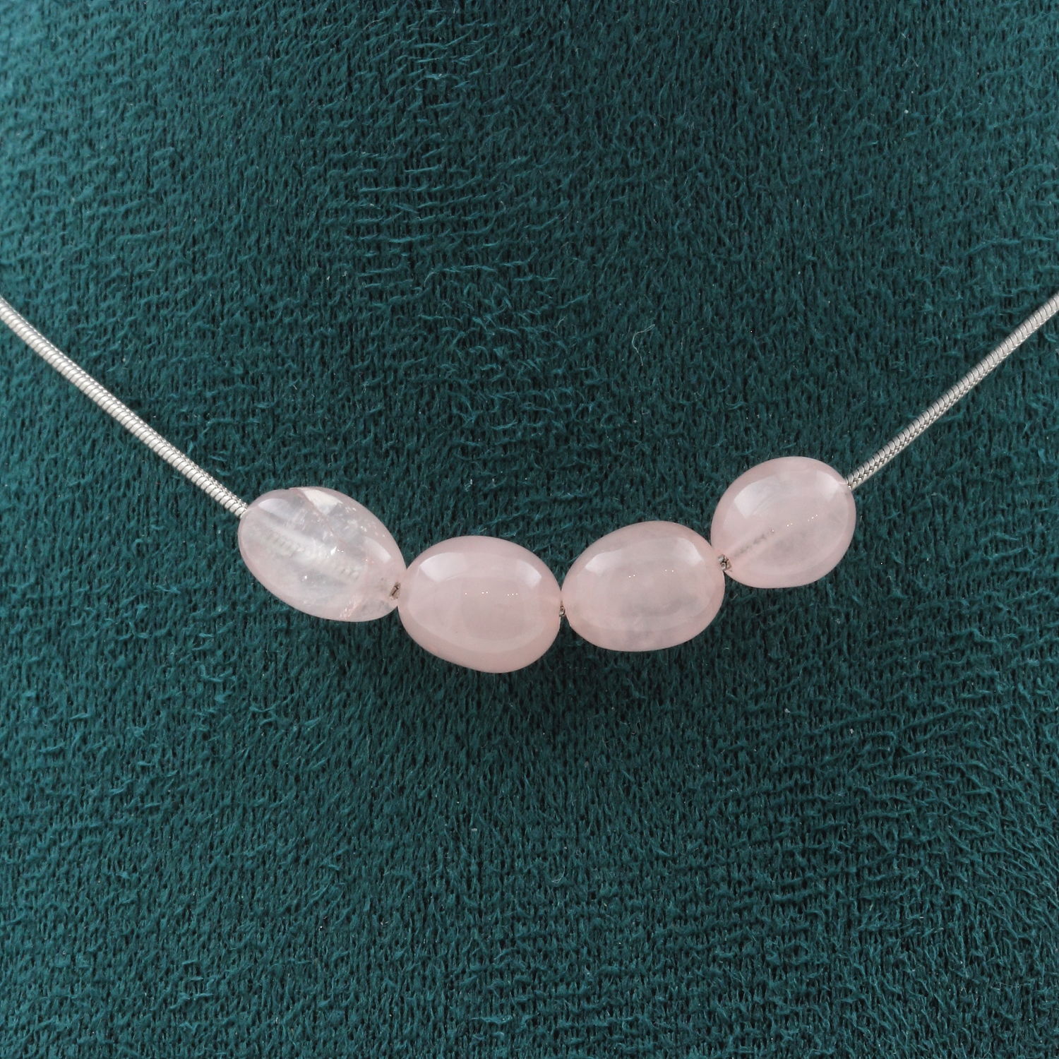 Collier 4 perles Quartz rose du Brésil Chaine en acier inoxydable