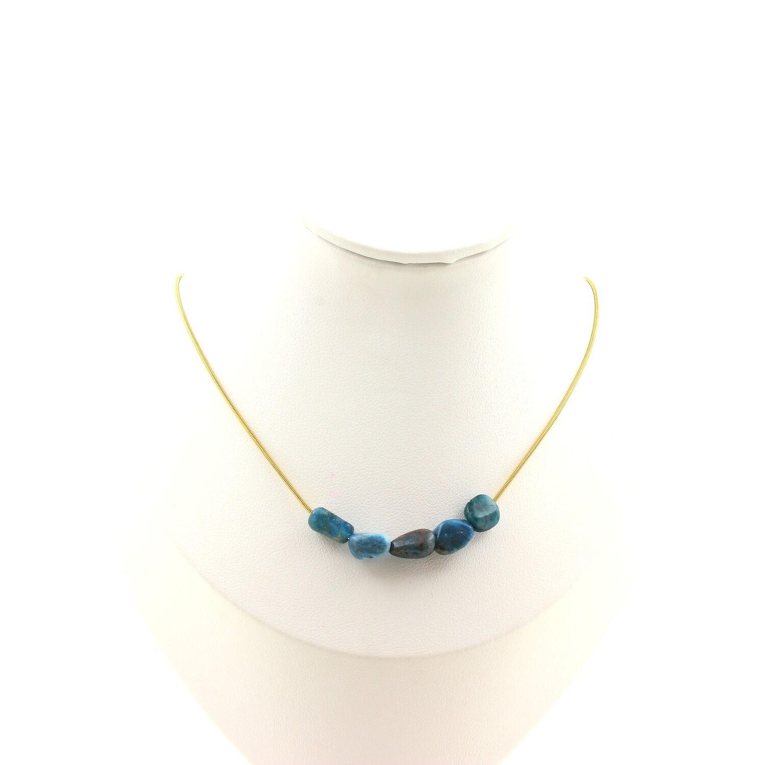 Collier 5 perles Apatite bleu du Brésil. Chaine en acier doré inoxydable