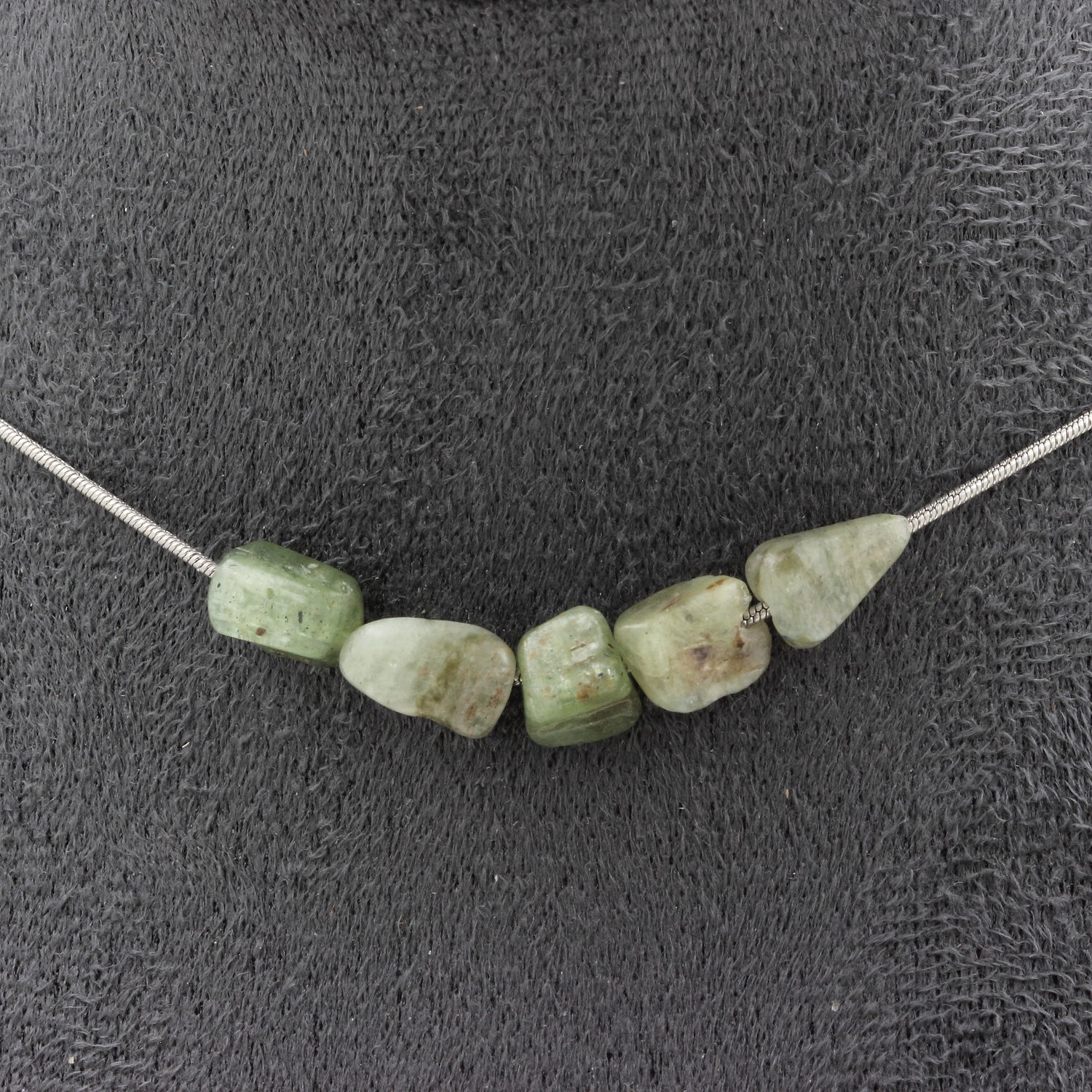 Collier 5 perles Apatite verte de Madagascar. Chaine en acier inoxydable