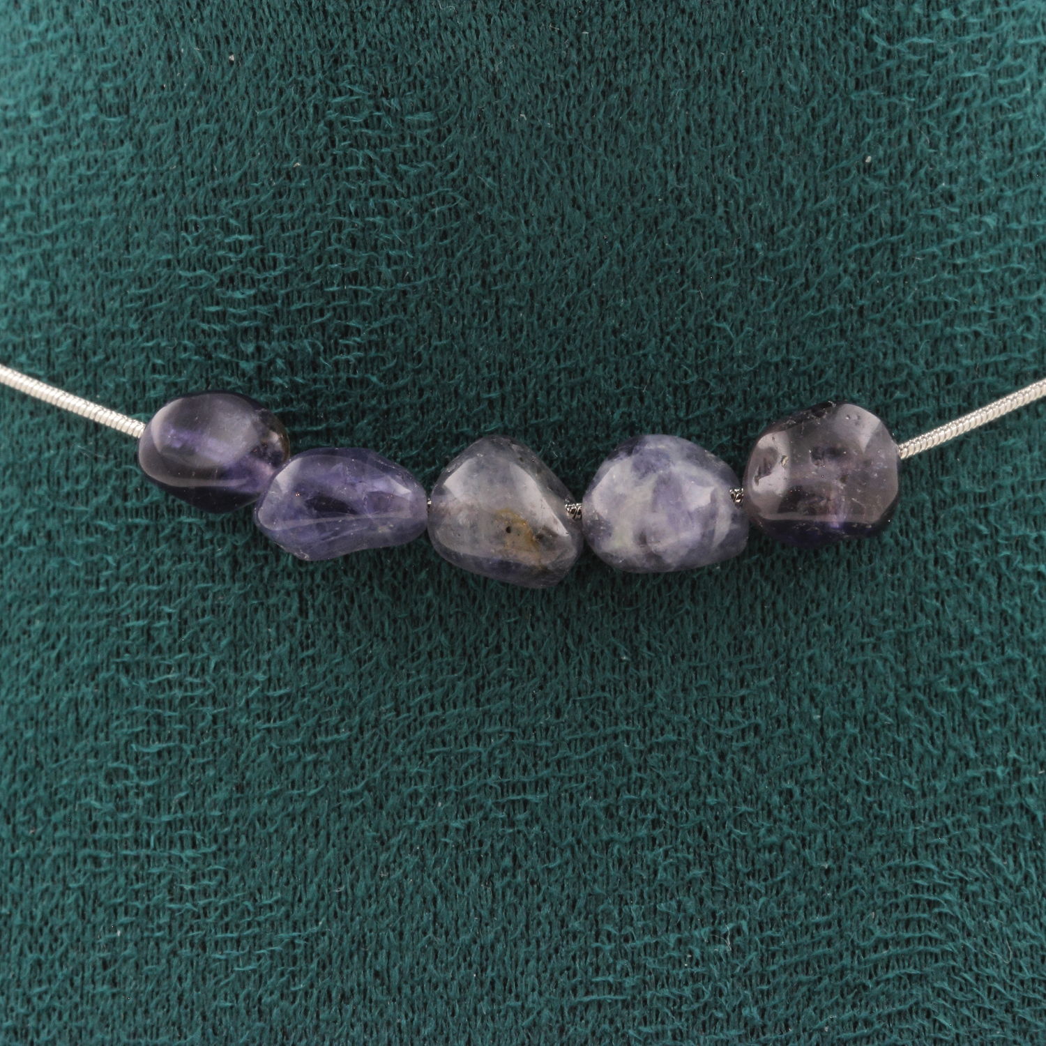 Collier 5 perles Cordierite Iolite de Madagascar. Chaine en acier inoxydable