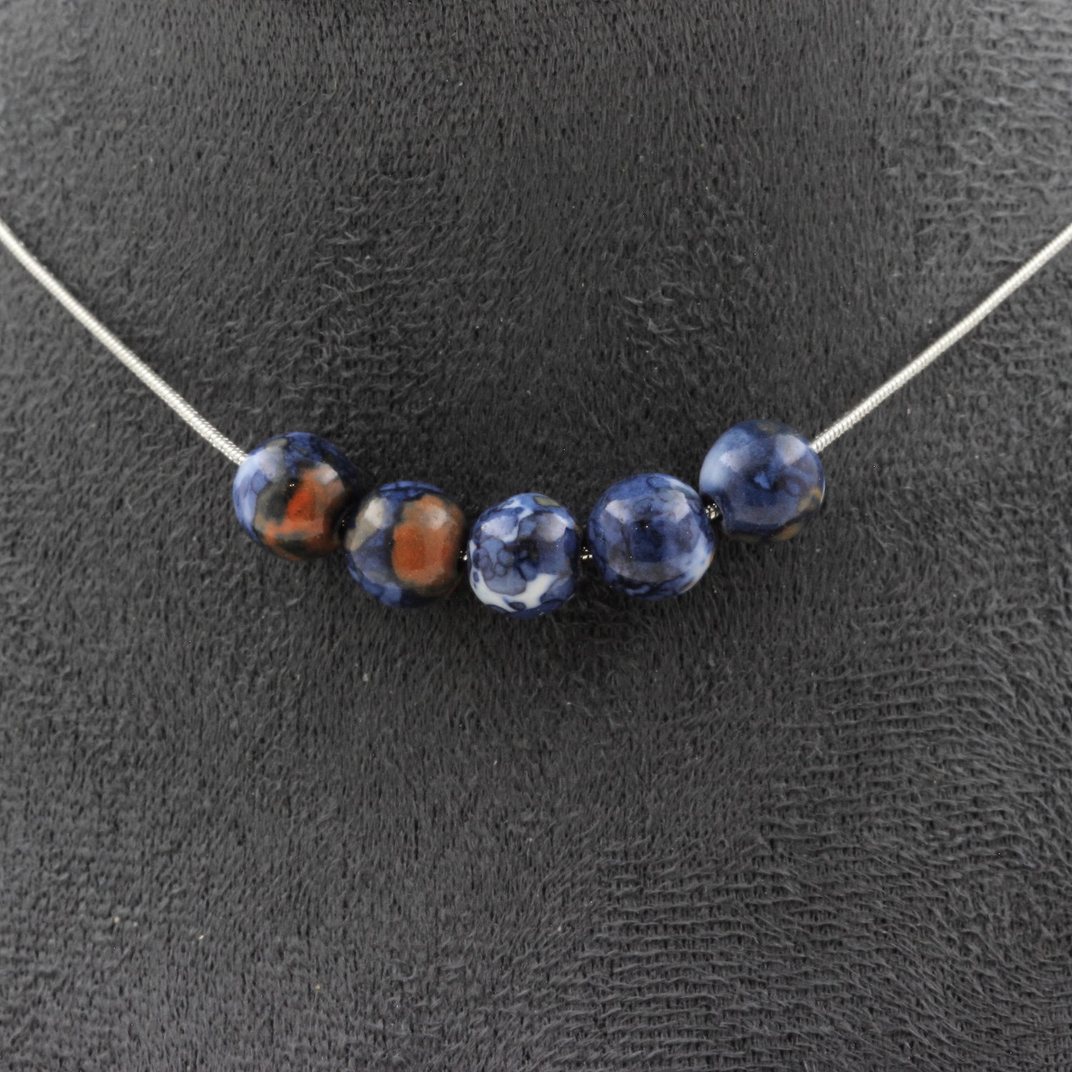 Collier 5 perles Jaspe bleu 8 mm. Chaine en acier inoxydable