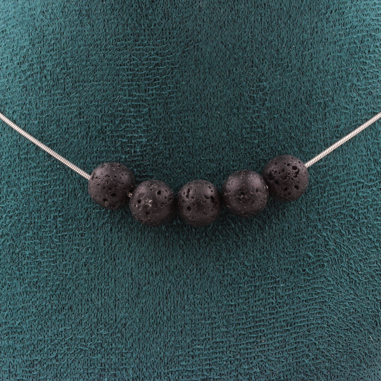 Collier 5 perles Lave 8 mm. Chaine en acier inoxydable