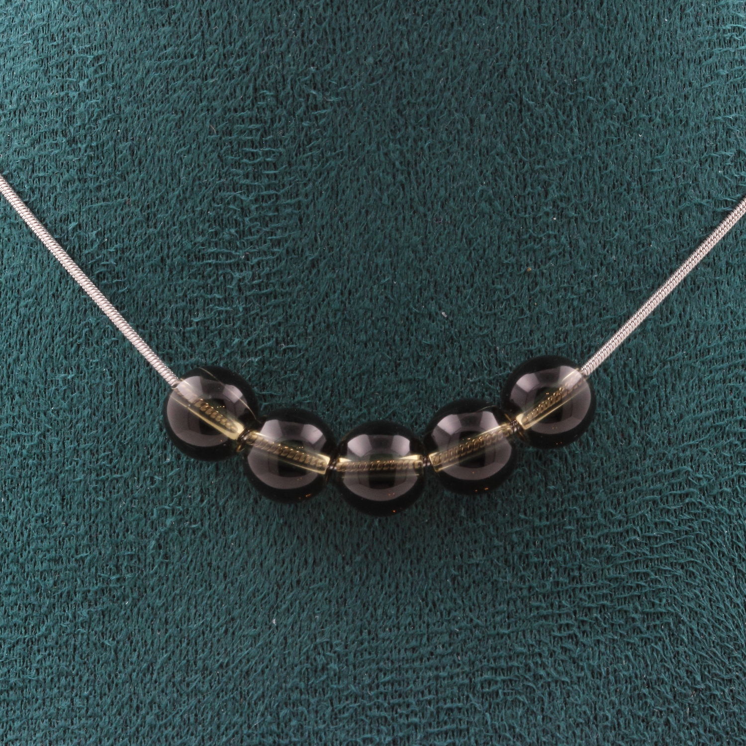 Collier 5 perles Quartz fumé 8 mm chaine en acier inoxydable longueur 45 cm. Nous pouvons le fabriquer à votre longueur sur demande. Fabriqué en France dans notre atelier A Bijoux.