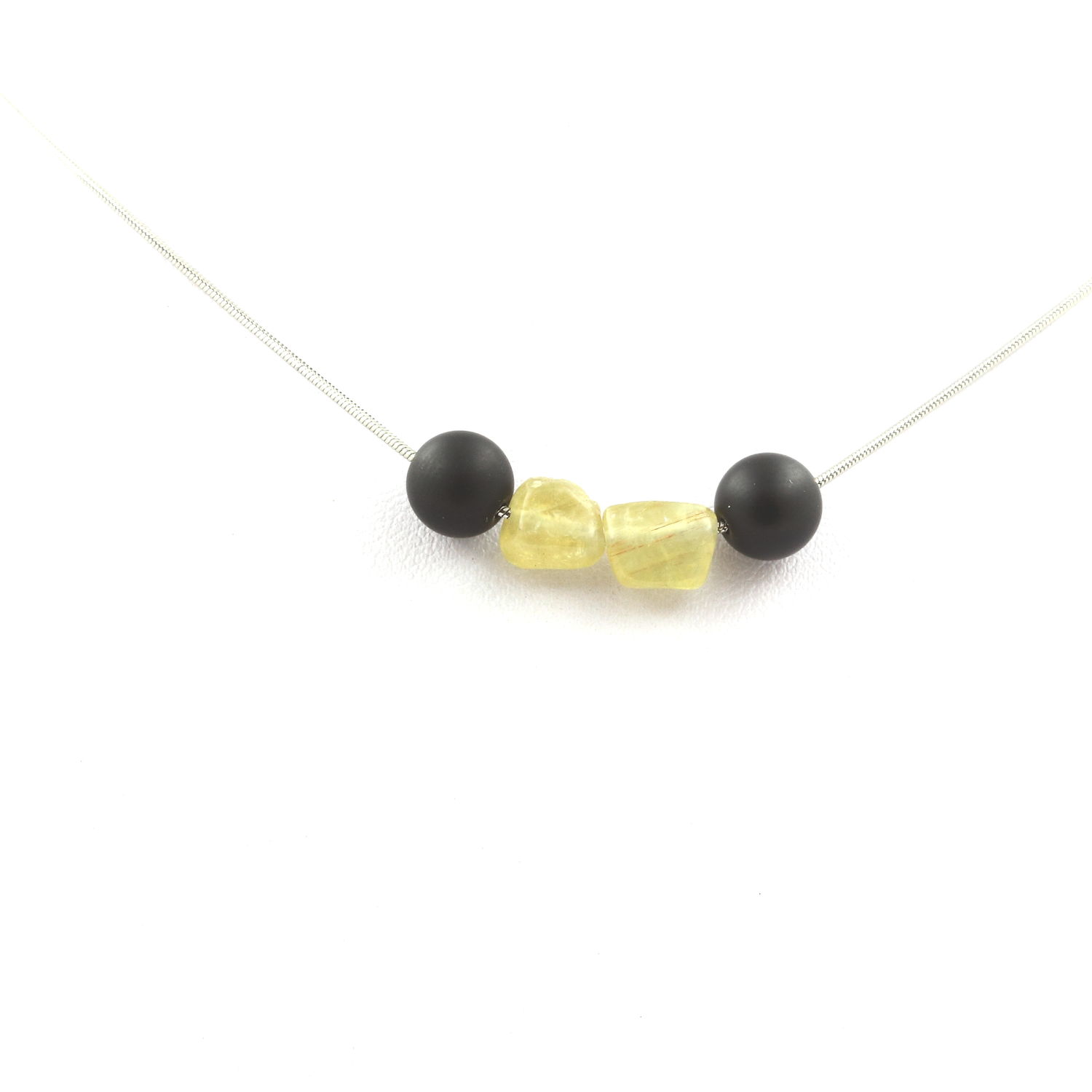 Collier Apatite jaune de Madagascar + Perles Onyx noir mat 8 mm