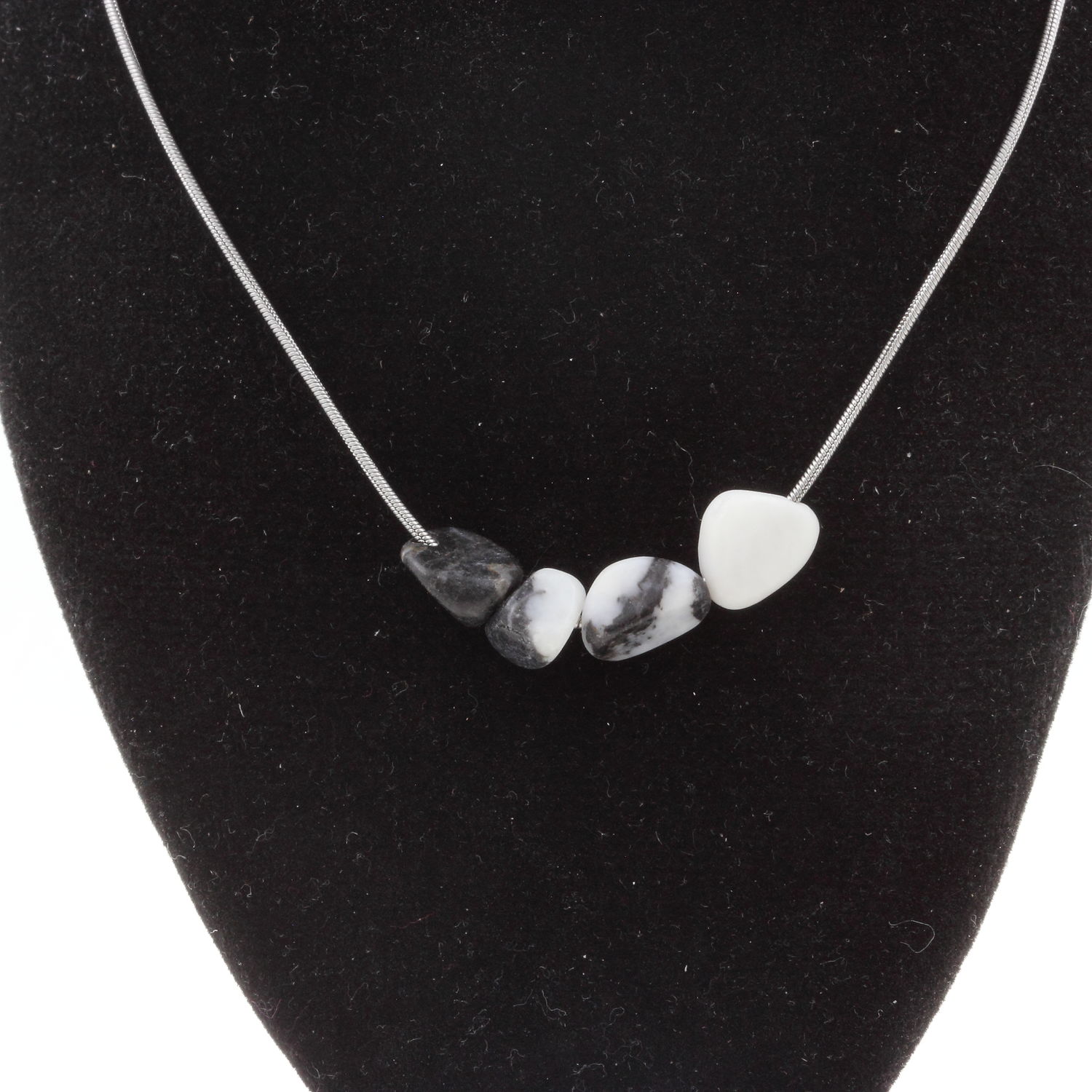 Collier Jaspe zèbre du Brésil 4 Perles chaine en acier inoxydable ( longueur 40, 45, 50, 55, 60, 70, 80, 90 cm au choix ).