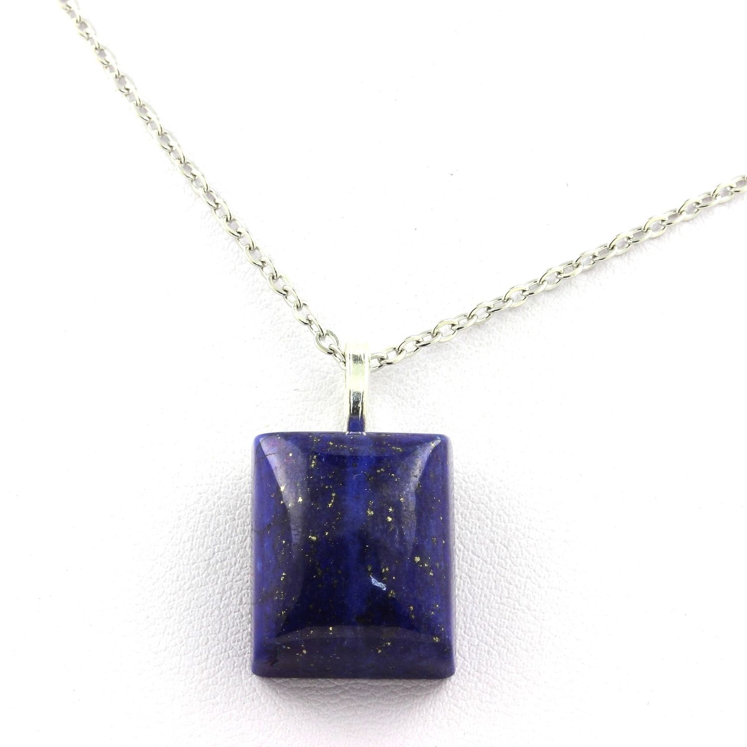Collier Lapis Lazuli + chaine en acier inoxydable longueur 40, 45, 50, 55, 60, 70, 80, 90 cm au choix.