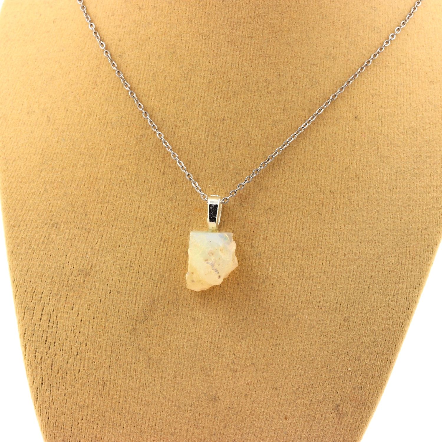 Collier Opale brut + chaine en acier inoxydable longueur 40, 45, 50, 55, 60, 70, 80, 90 cm au choix. Opale en provenance de Wello, Ethiopie