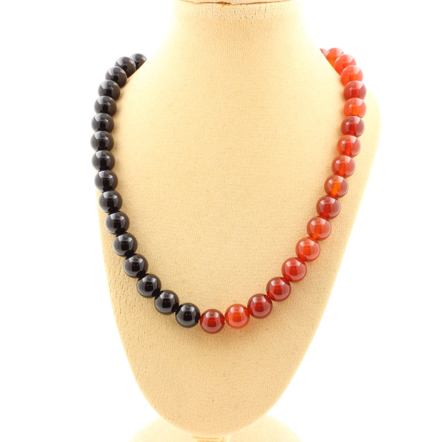 Collier perles Agate rouge + Agate noire 8 mm chaine en acier inoxydable longueur 45 cm. Nous pouvons le fabriquer à votre longueur sur demande (prix variable selon la longueur du collier). Fabriqué en France dans notre atelier A Bijoux.