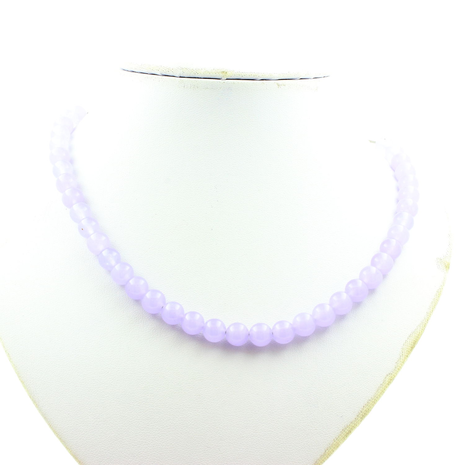 Collier perles Calcédoine lavande 8 mm chaine en acier inoxydable longueur 45 cm. Nous pouvons le fabriquer à votre longueur sur demande (prix variable selon la longueur du collier). Fabriqué en France dans notre atelier A Bijoux.