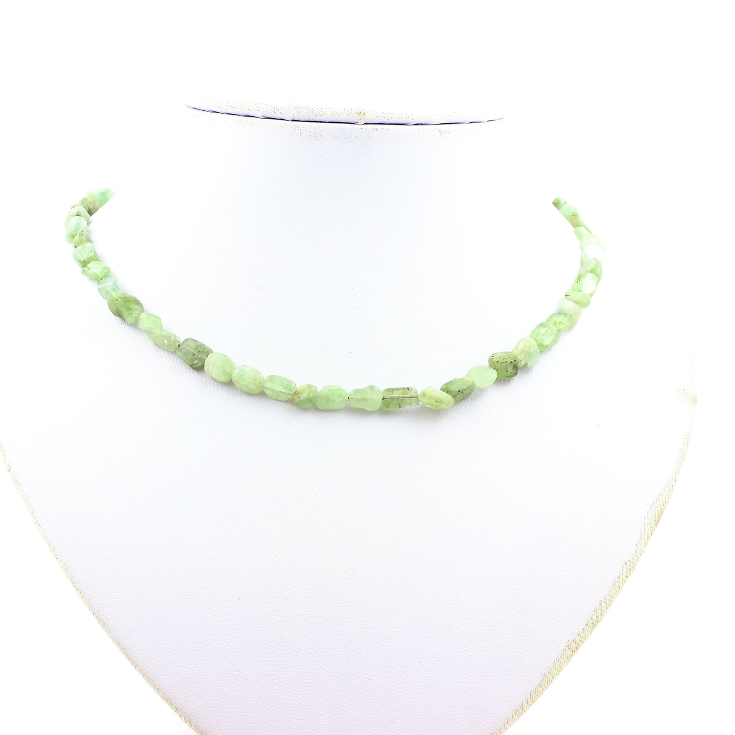 Collier perles Cyanite verte du Brésil chaine en acier inoxydable longueur 45 cm. Nous pouvons le fabriquer à votre longueur sur demande (prix variable selon la longueur du collier). Fabriqué en France dans notre atelier A Bijoux.