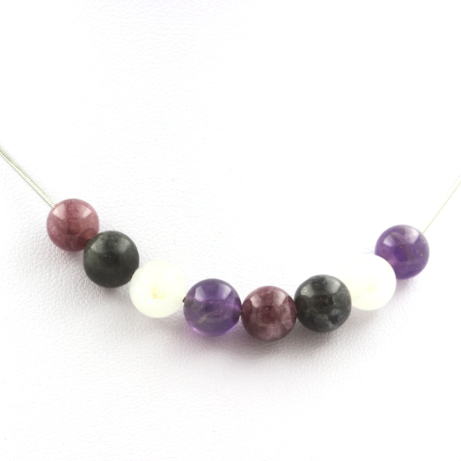 Collier perles Lépidolite + Labradorite + Pierre de Lune + Améthyste 8 mm