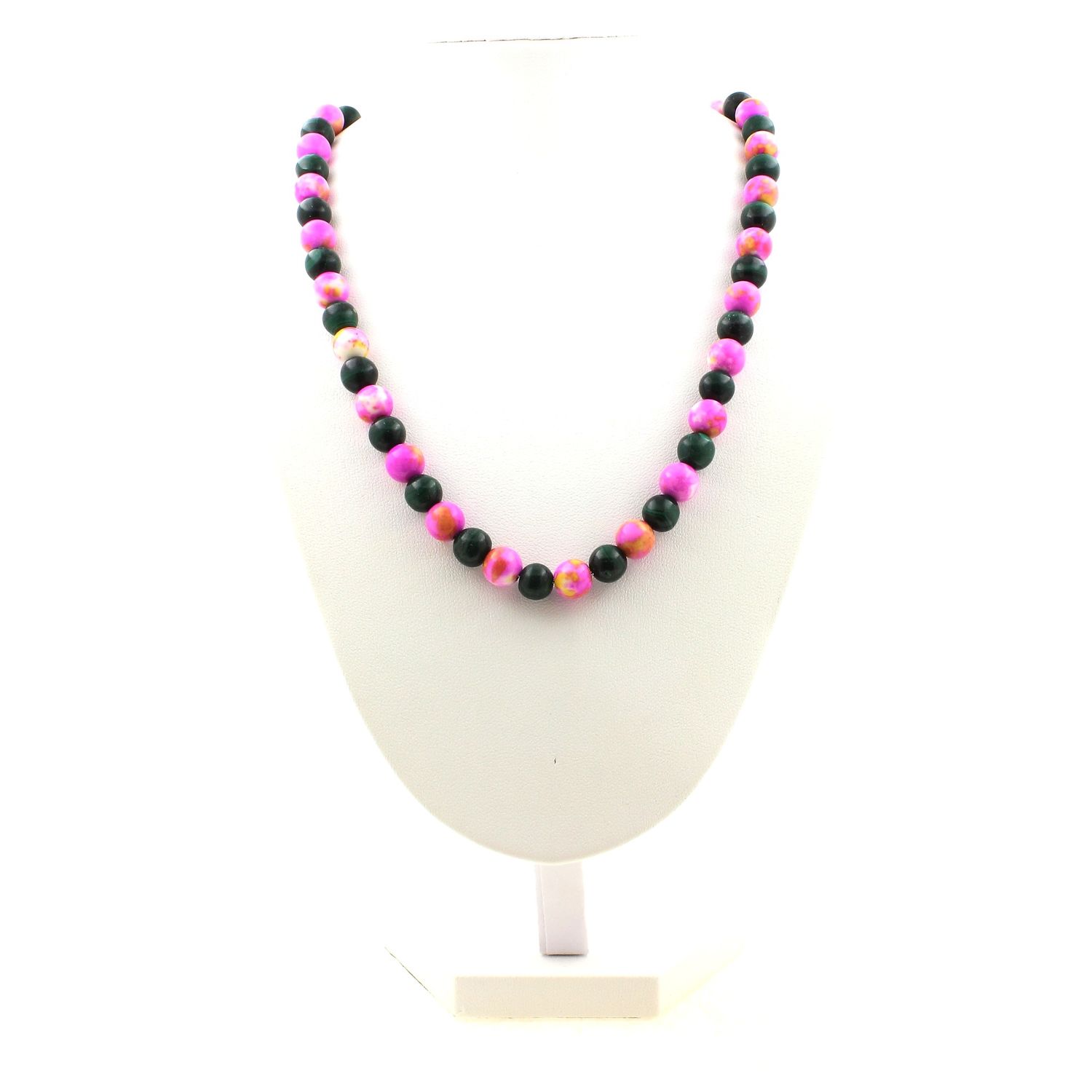 Collier perles Malachite du Congo qualité 7A + Jaspe rose jaune 8 mm Chaine en acier inoxydable