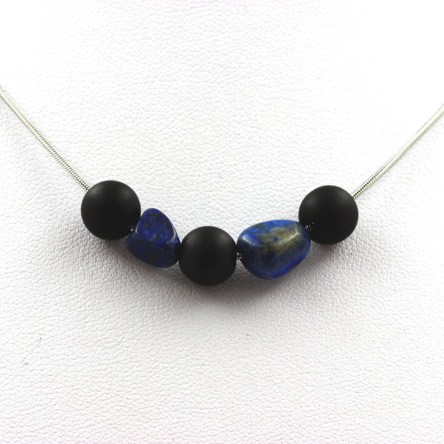 Collier perles Onyx noir mat 8 mm + Lapis Lazuli du Pakistan