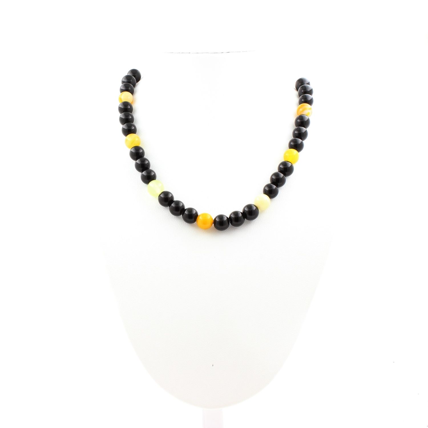 Collier perles Sardonyx jaune + Agate noire 8 mm
