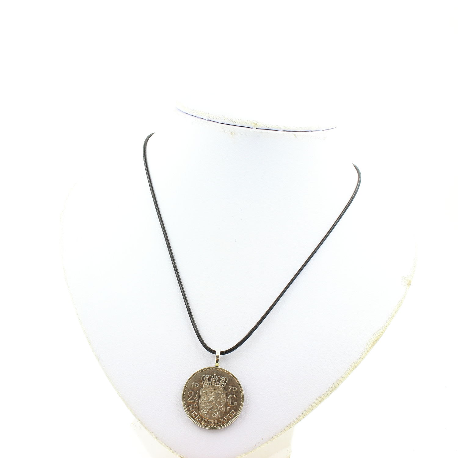 Pendentif Pièce de Monnaie Authentique Luxembourg 2½ gulden Juliana + cordon cuir noir ( longueur 45 à 50 cm ).